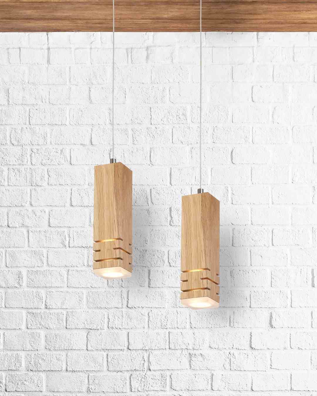 BERGEN 575 to minimalistyczna, nowoczesna lampa wisząca, złożona z dwóch drewnianych opraw z akrylowym kloszem, pod którym zamontowano niewymienny moduł LED. Jego moc wynosi 10 W, co odpowiada mocy tradycyjnej żarówki równej 50 W. LED zapewnia ciepłą, białą barwę światła o temperaturze 3000 K. Strumień świetlny ma wartość 700 lm. Oprawy ze źródłem światła zawieszono na regulowanym przewodzie, który przymocowano do podłużnej podsufitki o wymiarach 30 cm x 9 cm. Długość zawiesia może sięgać do 100 cm.