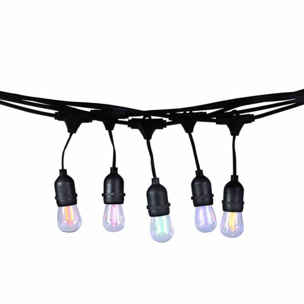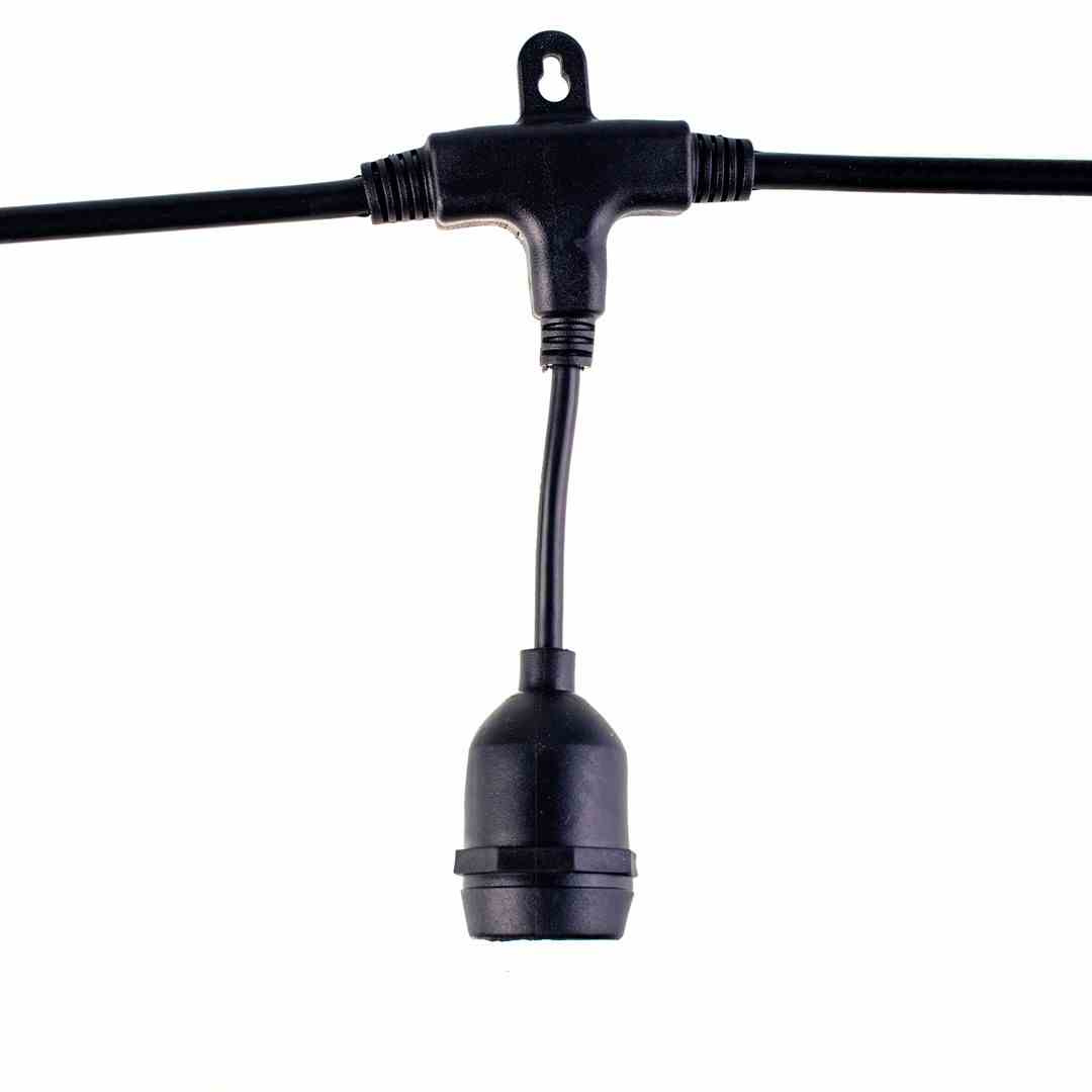 Girlanda jest dostępna w uniwersalnym, czarnym kolorze i wykonano ją z wysokiej jakości tworzywa sztucznego. O trwałości tego modelu świadczy to, że opisano go za pomocą stopnia ochrony IP44, co oznacza, że osprzęt jest chroniony zarówno przed drobnymi pyłami, jak i przed wilgocią. Dzięki temu ten model doskonale sprawdzi się jako ozdoba i jednocześnie dodatkowe oświetlenie w ogrodach, altanach czy na tarasach.