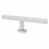 Nowoczesny kinkiet BAY to lampa, która – nieco wbrew minimalistycznej formie – posiada niezwykle szerokie spektrum zastosowań. Sprawdzi się ona wszędzie tam, gdzie potrzeba dodatkowego, mocnego oświetlenia punktowego, jednak najbardziej rekomendowaną przestrzenią jest łazienka. Kinkiet BAY ma formę płaskiej, chromowanej listwy o długości 14 centymetrów, zamocowanej na niewielkim wsporniku montowanym do ściany na prostokątnej rozecie. Źródło światła w postaci żarówki LED znajduje się w dolnej części listwy, dzięki czemu lampa doskonale oświetla wszystko, co znajduje się bezpośrednio pod nią. Doskonale nadaje się zatem do zamontowania nad lustrem i umywalką lub we wnęce, w które wyeksponowane zostaną łazienkowe akcesoria.