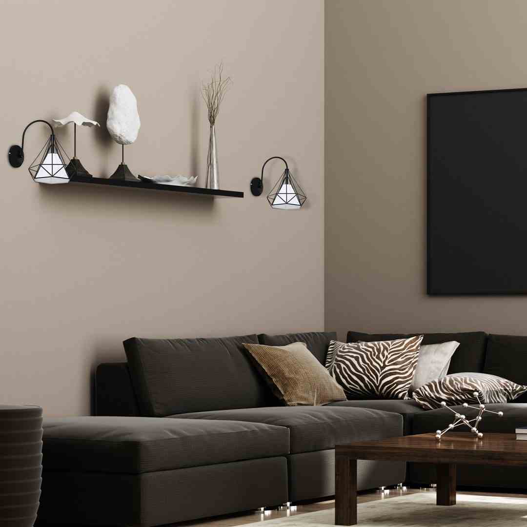 Model TRIANGOLO 4383 to piękna lampka stojąca. Biały abażur doskonale kontrastuje z czarną, drucianą podstawą, w której dominują wycięcia w kształcie trójkątów. Taka lampka doskonale ożywi minimalistyczne wnętrza, a także będzie świetnie współgrać z pozostałymi elementami wystroju vintage.