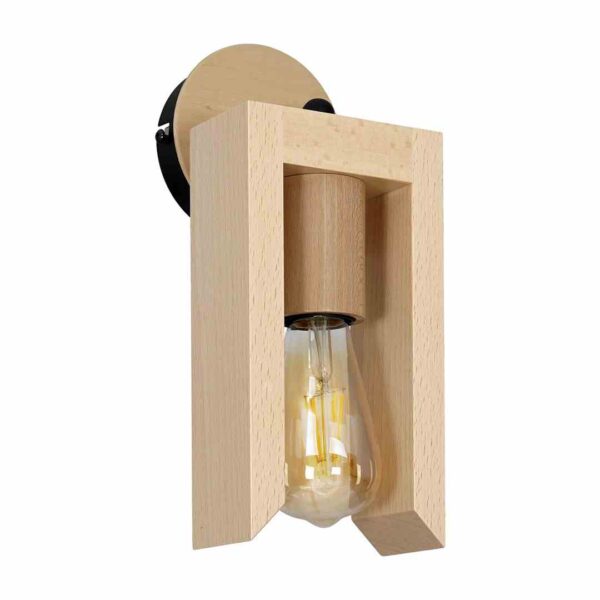 Lampy z kolekcji VINCENZO wykonano z połączenia dwóch materiałów. Podstawy lamp, zwisy czy ramy zrobiono z czarnego metalu, a części pełniące funkcję żyrandola z jasnego drewna. Warto wspomnieć, że to one dodają niezwykłego charakteru całości. Mają bowiem formę otwartego prostokąta, przy czym dwa boki zostały ścięte, co nadaje całości asymetrycznego charakteru. Taka konstrukcja doskonale eksponuje dekoracyjną żarówkę.