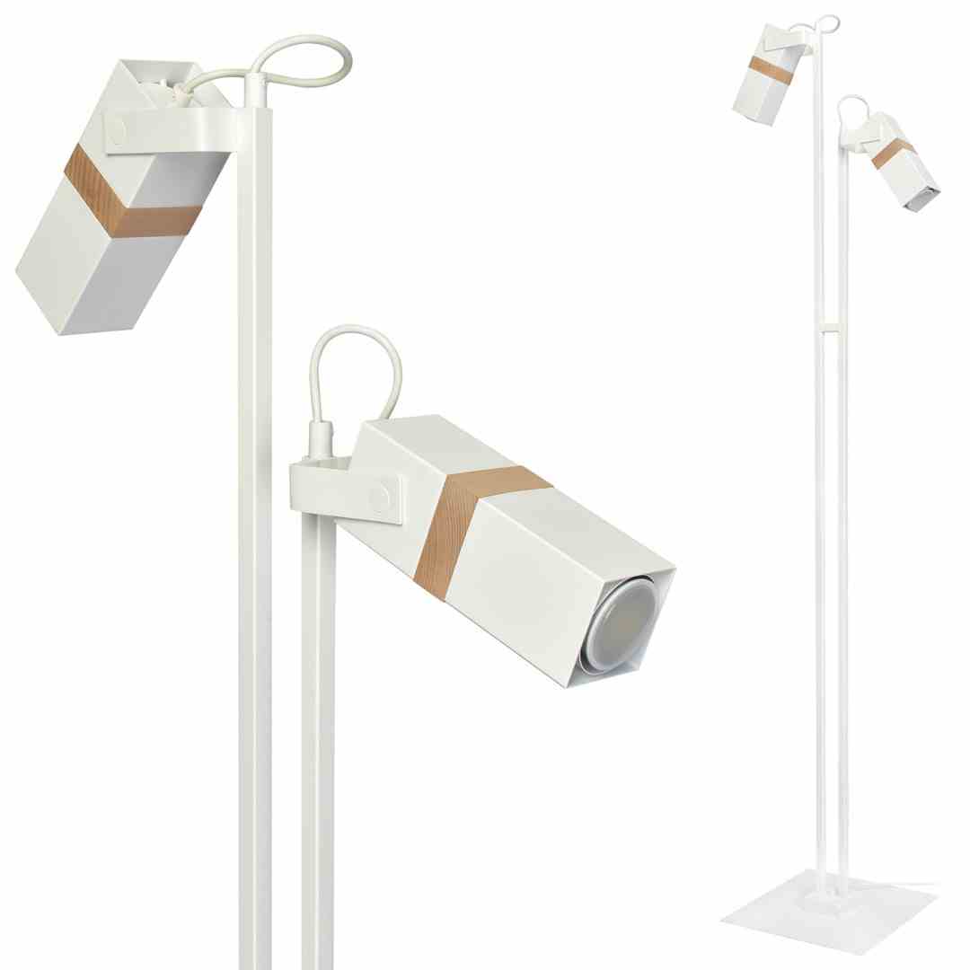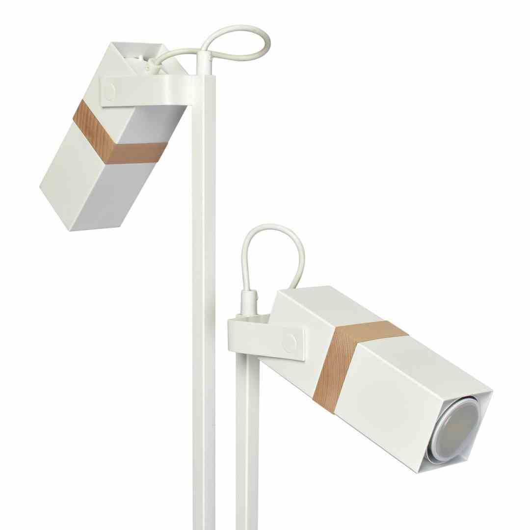 • lampa podłogowa z dwoma punktami świetlnymi biała z jasnym drewnem MLP6106
