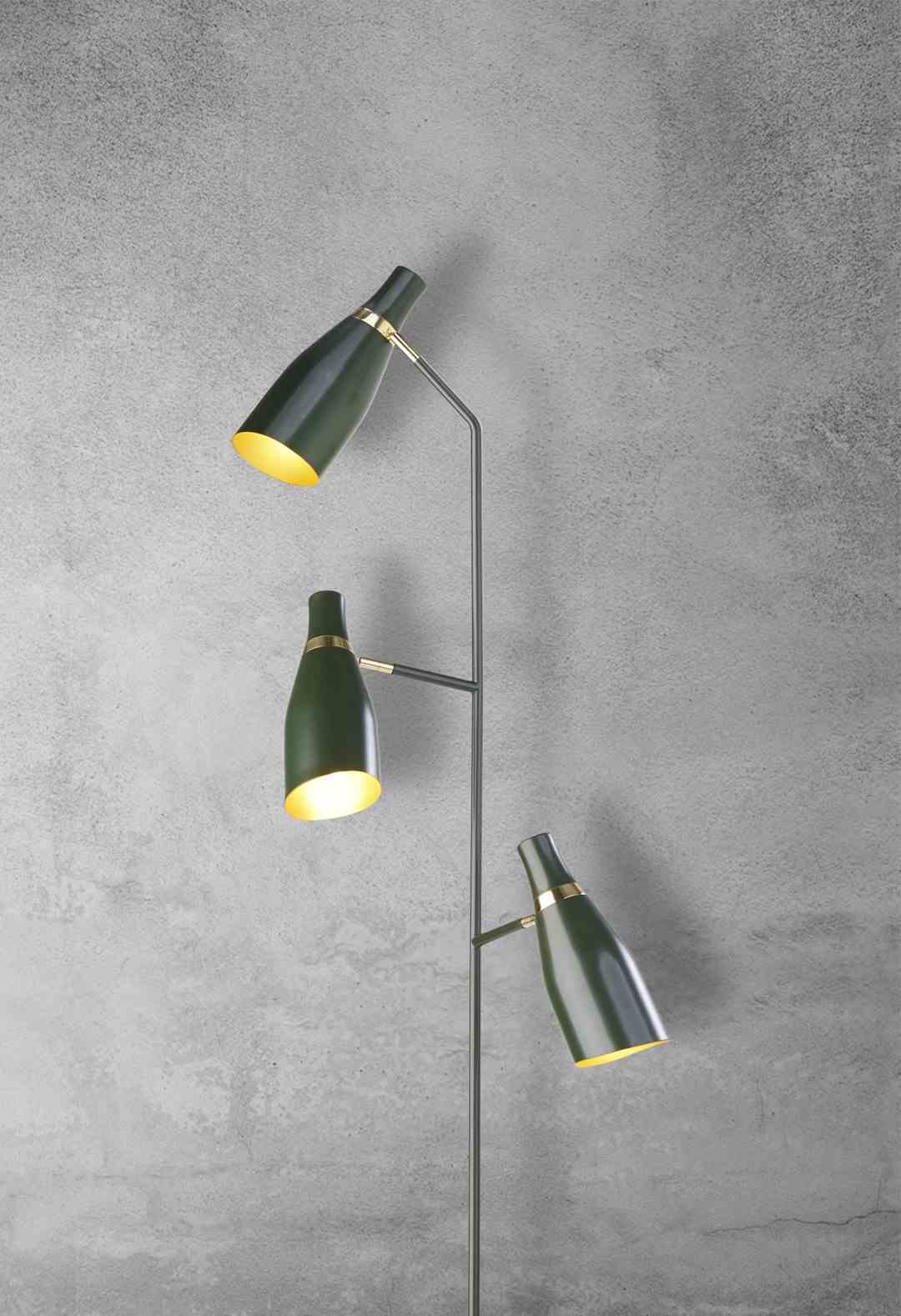 Lampa podłogowa z linii Madame Cliqoute została wyposażona w trzy oprawy, które można osobno