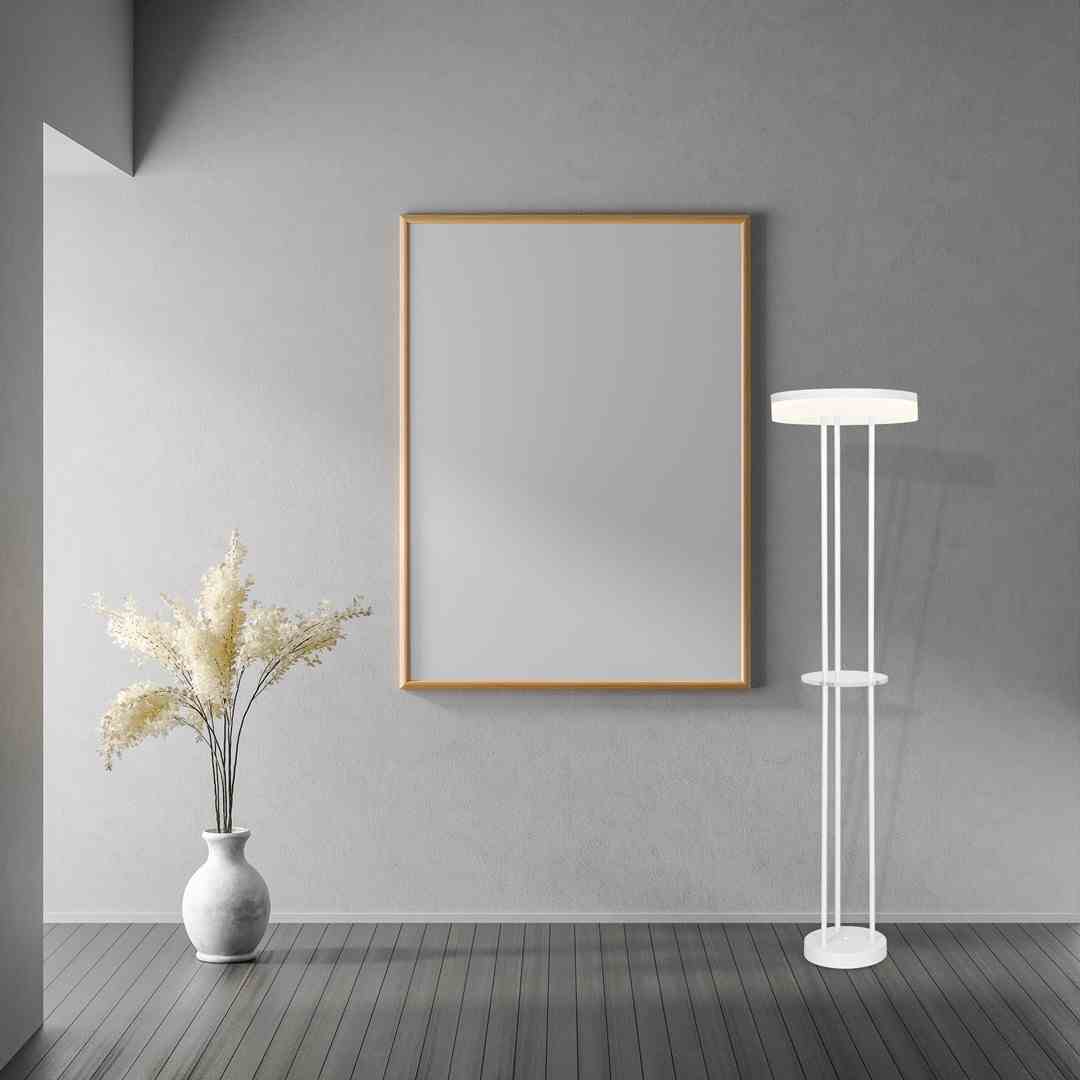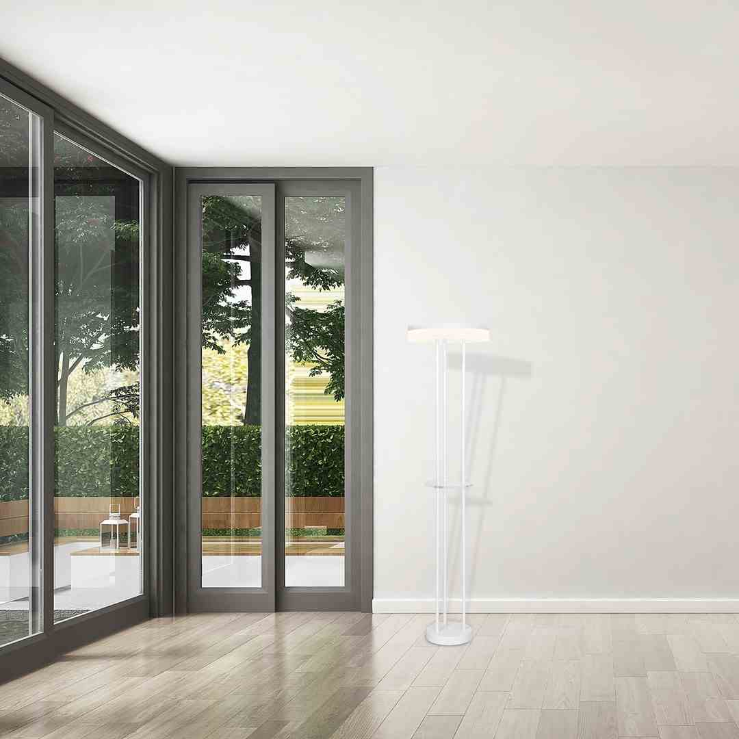 „Stylowa podłogowa lampa z serii Ring ma 165 cm wysokości. Zamontowany na wierzchołku lampy wymienny moduł LED ma moc 24 W. Lampa charakteryzuje się przyjemną dla oka neutralną barwą światła 4000 K oraz jasnym strumieniem świetlnym – 1680 lm. Zastosowanie technologii LED pozwala zmniejszyć koszty zużycia energii, nie wpływając na jakość źródła światła. Lampę wykonano z wysokiej jakości materiałów: metalu i akrylu wykończonym w kolorze białym.