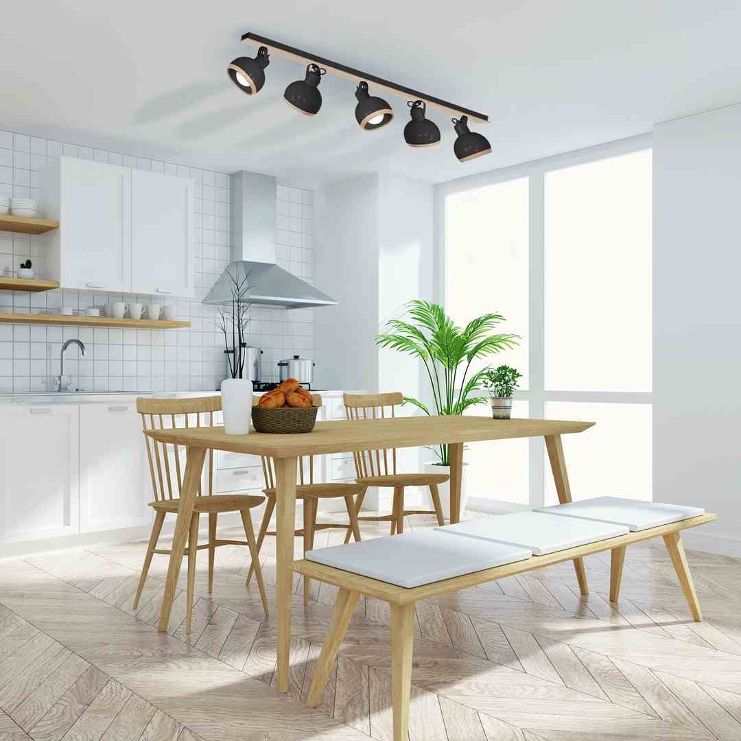 Lampy mają nowoczesny, kulisty kształt. Zostały wykonane z metalu oraz drewna, który tworzy oryginalny detal w postaci pierścienia na zakończeniu kloszy. Drewno widoczne jest również na ramionach i podstawie poszczególnych modeli. Prezentowana kolekcja świetnie sprawdzi się we współczesnych wnętrzach, charakteryzujących się prostotą i monochromatyczną, czarno-białą kolorystyką. Wstawki z drewna ocieplają całą stylizację. Łącząc ze sobą poszczególne modele można stworzyć spójną i kompletną aranżację.