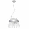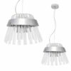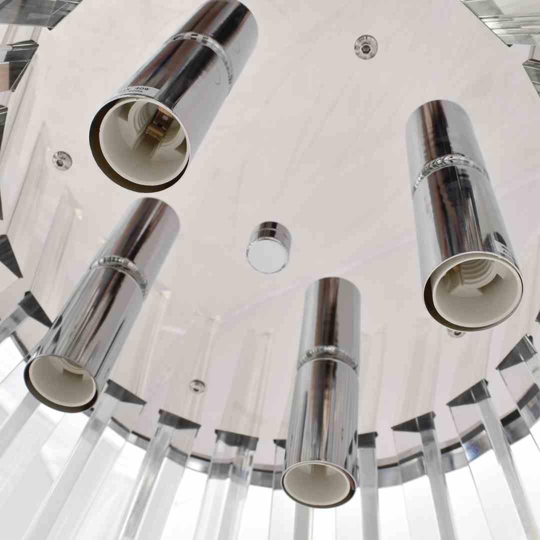 Prostokątne kryształy okalające źródło światła niczym korona, w stylowym odcieniu chromu, świetnie wkomponują się w pomieszczenia, w których dominuje stonowana kolorystyka, jak biel, czerń czy szarość. Lampę sufitową ROYAL można łączyć z kinkietem z tej samej kolekcji.