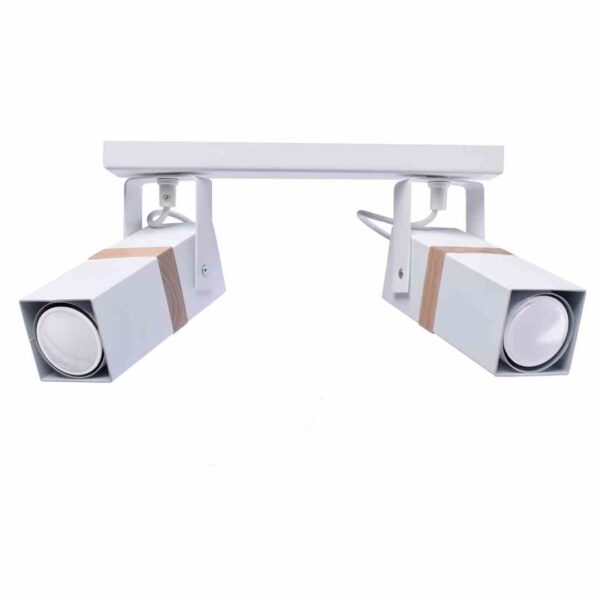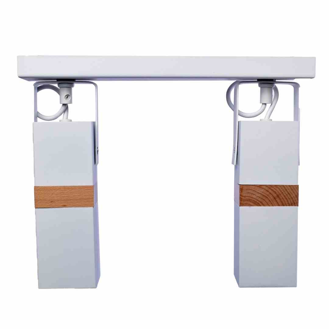 • lampa sufitowa z dwoma punktami świetlnymi biała z jasnym drewnem MLP5406