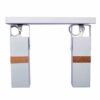 • lampa podłogowa z dwoma punktami świetlnymi biała z jasnym drewnem MLP6106