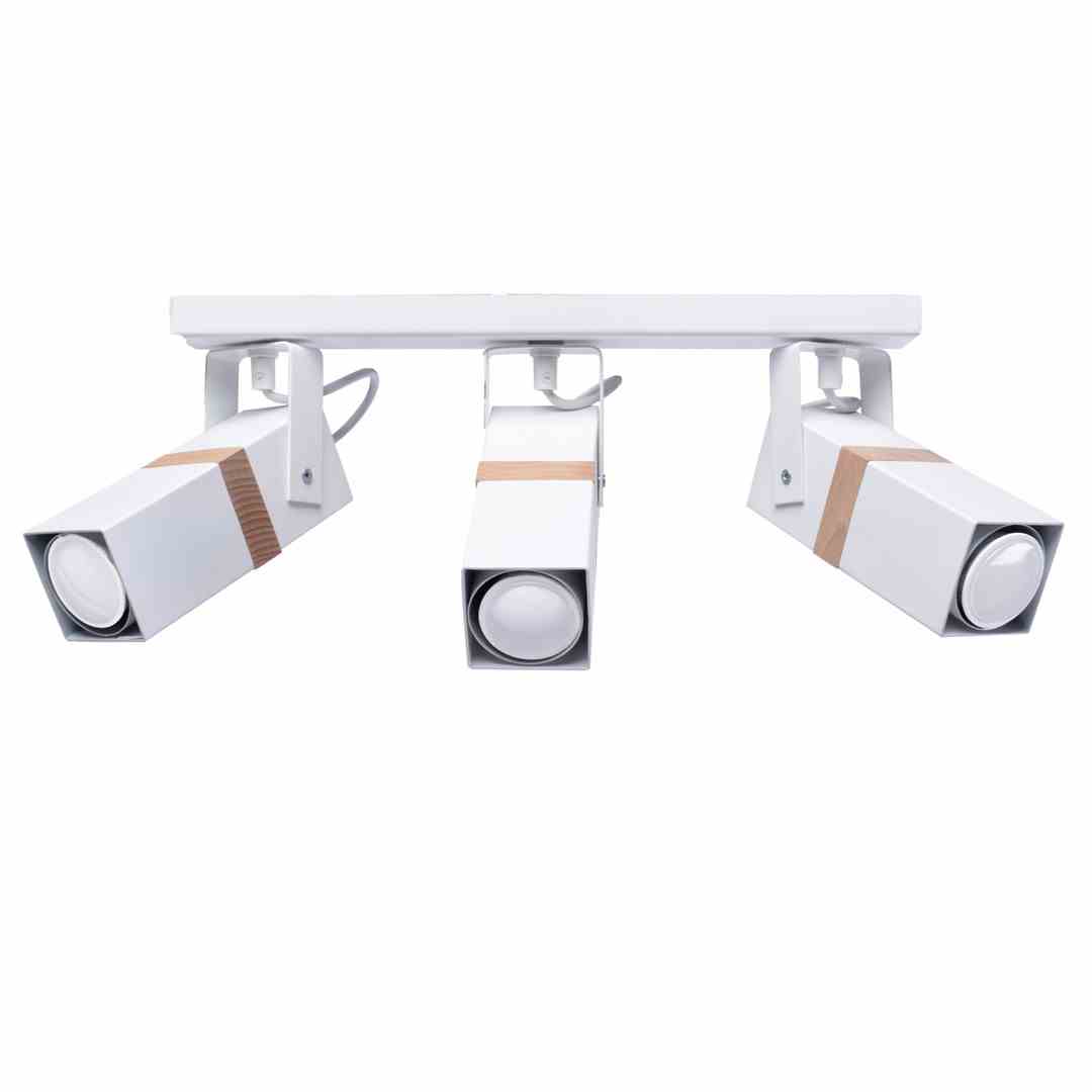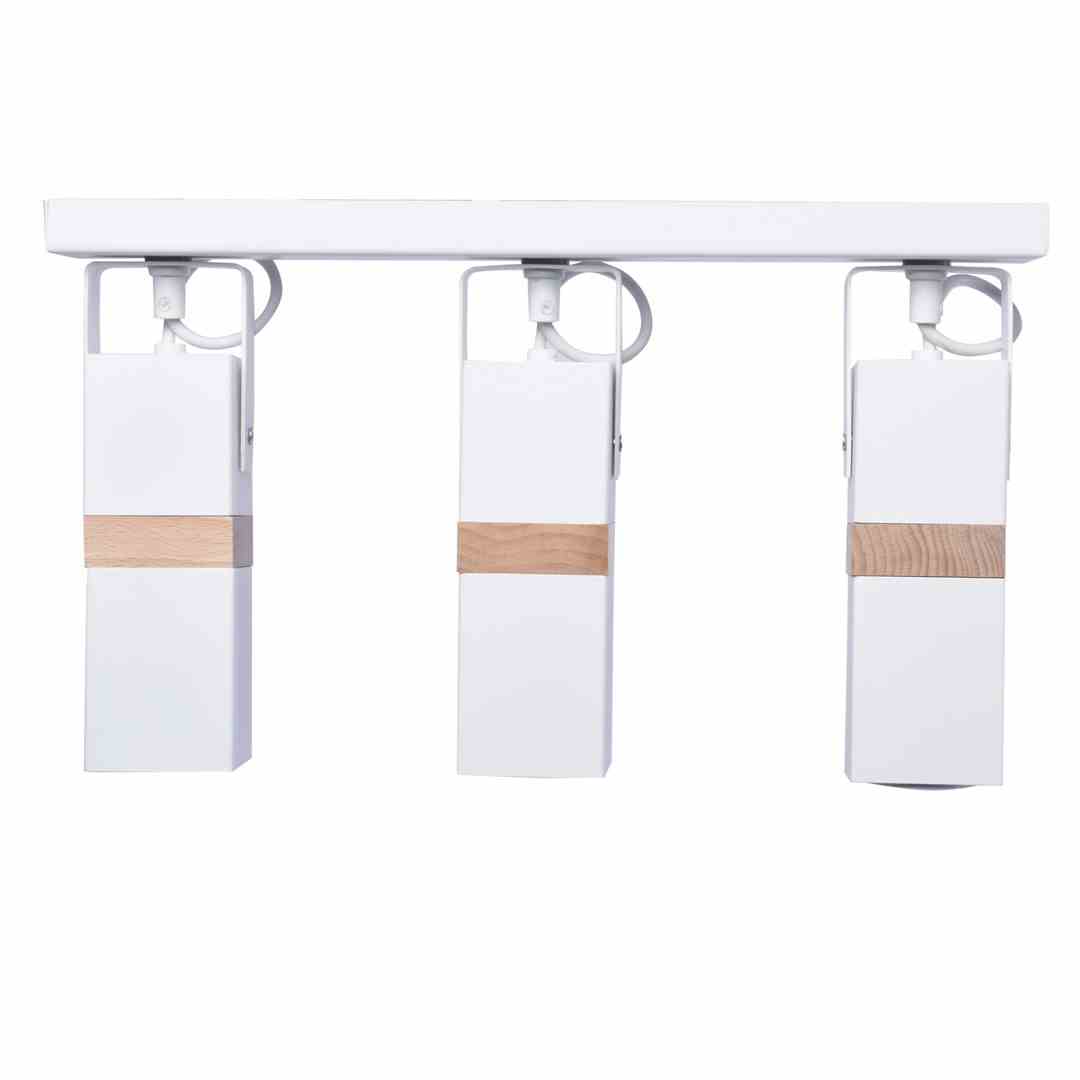 • lampa sufitowa z trzema punktami świetlnymi biała z jasnym drewnem MLP5407