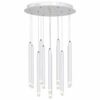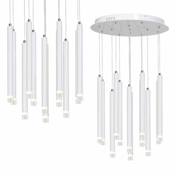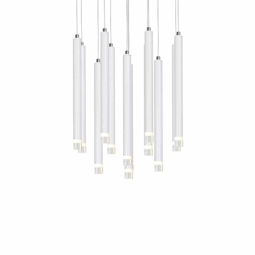 „Lampa sufitowa o niespotykanej formie i wyjątkowym kształcie. Posiada kilkanaście zintegrowanych źródeł światła, które można ustawić na dowolnej wysokości, maksymalnie do 100 cm. Takie rozwiązanie pozwala na dopasowanie jej do pomieszczeń zarówno wysokich, jak i niskich. Lampę wyróżniają też niewielkie rozmiary, m.in. szerokość 45 cm. Pojedynczy “sopel” ma średnicę 3,8 cm. Neutralna barwa światła najbardziej zbliżona do światła dziennego i silny strumień świetlny 840 lm zapewniają przyjemne użytkowanie. Całość wykonano z metalu oraz akrylu.