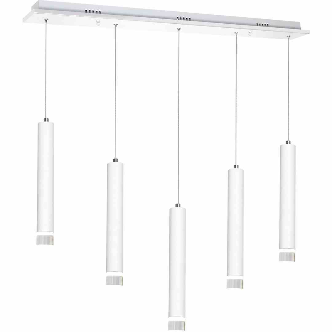 Lampa sufitowa Alba 190 posiada pięć źródeł światła, które można regulować od 60 do 100 cm wysokości. Dzięki takiemu rozwiązaniu można bez problemu dopasować lampę do pomieszczeń zarówno wysokich, jak i niskich. Źródłem światła są zainstalowane na stałe moduły LED o mocy 25 W. Dzięki zastosowaniu technologii LED uzyskujemy efekt niskiego zużycia energii przy wysokiej wydajności oświetlenia. Barwę oświetlenia dobrano w taki sposób, aby lampa gwarantowała komfort jej użytkowania, stąd barwa najbardziej neutralna 4000K i przyjazna dla oka.
