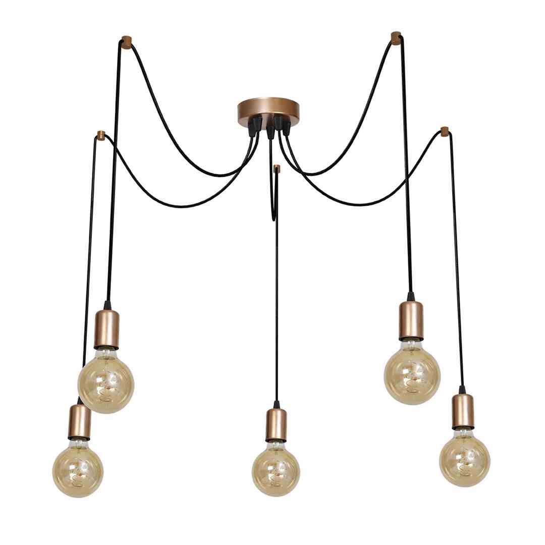Nowoczesne lampy sufitowe swoją formą przypominają pająka. Niecodzienne, a zarazem charakterystyczne oświetlenie z serii ARACHNE, doskonale sprawdzi się we współczesnych i minimalistycznych aranżacjach. Lampa występuje w trzech wersjach kolorystycznych: złoto-czarnym matowym, miedzianym i mosiądzowym. Kable są w ozdobnym oplocie koloru czarnego. Lampy posiadają miejsce na pięć źródeł światła. Wysokość każdego z nich można regulować na przewodzie. W ten sposób produkt można dopasować do pomieszczeń różnego typu. Całość prezentuje się stylowo, dzięki czemu lampa stanie się wyjątkową dekoracją. Dla tego produktu przeznaczona jest żarówka o gwincie E27.