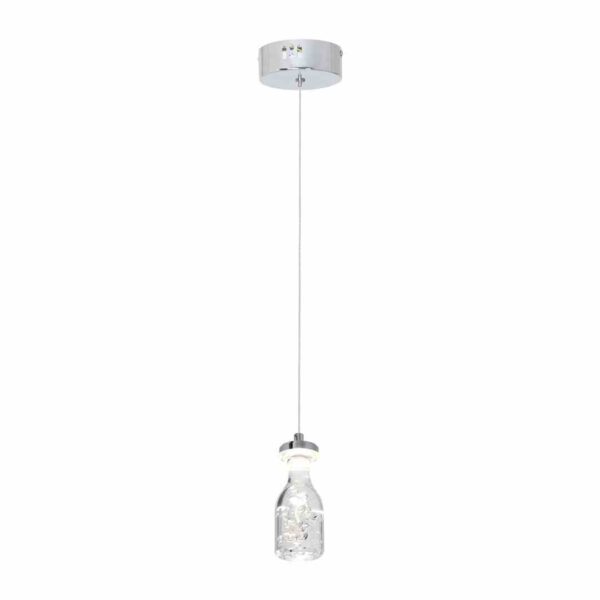 „Bottle 431 to kolejna wiszaca lampa sufitowa w ofercie firmy MiLAGRO. Do jej największych zalet można zaliczyć dobre parametry techniczne i niespotykaną stylistykę. W lampie zastosowano jeden punkt światła zainstalowany na stałe modułem LED o mocy 5 W, zapewniającym niskie zużycie energii. Dużą zaletą lampy jest możliwość regulacji wysokości do 100 cm, dzięki czemu lampę można bez problemu dopasować do pomieszczeń zarówno wysokich, jak i niskich. Barwę oświetlenia dobrano z uwzględnieniem tego, iż lampa ma gwarantować komfort jej użytkowania, stąd barwa najbardziej neutralna 4000 K.