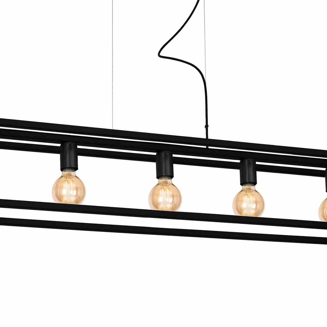 Linia CAGE to cztery lampy: kinkiet, a także trzy lampy wiszące – wyposażone w trzy, cztery lub w pięć źródeł światła. Każdy z tych modeli jest dostępny w trzech atrakcyjnych wariantach kolorystycznych – w połączeniu złota i czerni, samej, klasycznej czerni, a także w połączeniu bieli i srebra.