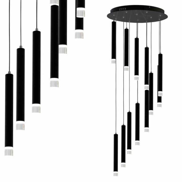 Lampa sufitowa o niespotykanej formie i wyjątkowym kształcie. Posiada kilkanaście zintegrowanych źródeł światła, które można ustawić na dowolnej wysokości, maksymalnie do 200 cm. Takie rozwiązanie pozwala na dopasowanie jej do pomieszczeń zarówno wysokich, jak i niskich. Lampę wyróżniają też niewielkie rozmiary, m.in. szerokość 45 cm. Pojedynczy “sopel” ma średnicę 3,8 cm. Neutralna barwa światła najbardziej zbliżona do światła dziennego i silny strumień świetlny 840 lm zapewniają przyjemne użytkowanie. Całość wykonano z metalu oraz akrylu.
