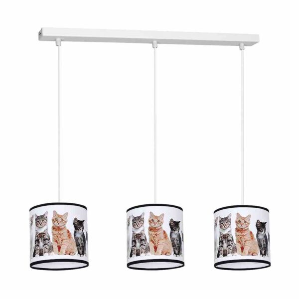 Lampa wisząca CATS utożsamia wszystko to, czego oczekuje się od oświetlenia w pokoju dziecięcym: zapewnia optymalny poziom jasności, a zarazem dopełnia całą aranżację. Model ten znakomicie będzie współgrał w pastelowymi ścianami, bajowymi dekoracjami i całą gamą kolorowych zabawek. Małe miłośniczki puszystych zwierzaków z pewnością docenią realistyczne wizerunki małych kotków na abażurze, a sama lampa będzie dla nich doskonałą dekoracją i spełnieniem dziecięcych marzeń. Dodatkowym atutem modelu CATS jest możliwość regulacji długości przewodu, dzięki czemu bez trudu można dopasować wysokość lampy do wymogów pomieszczenia.