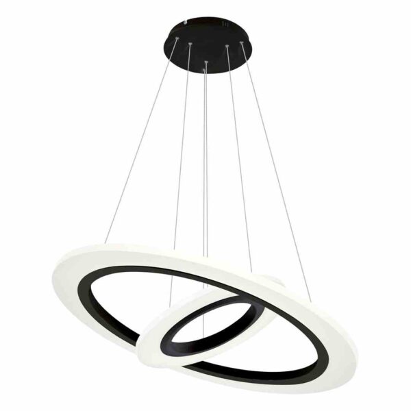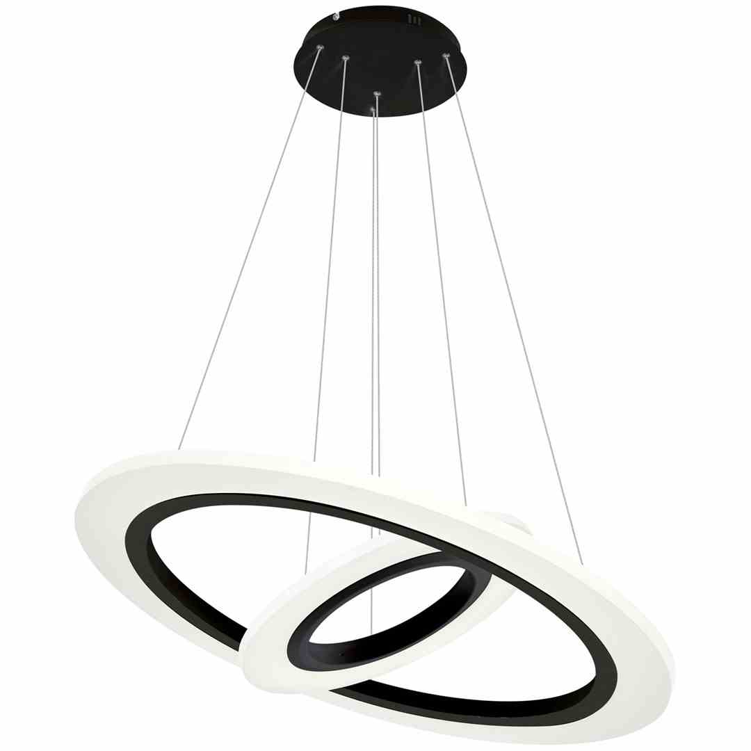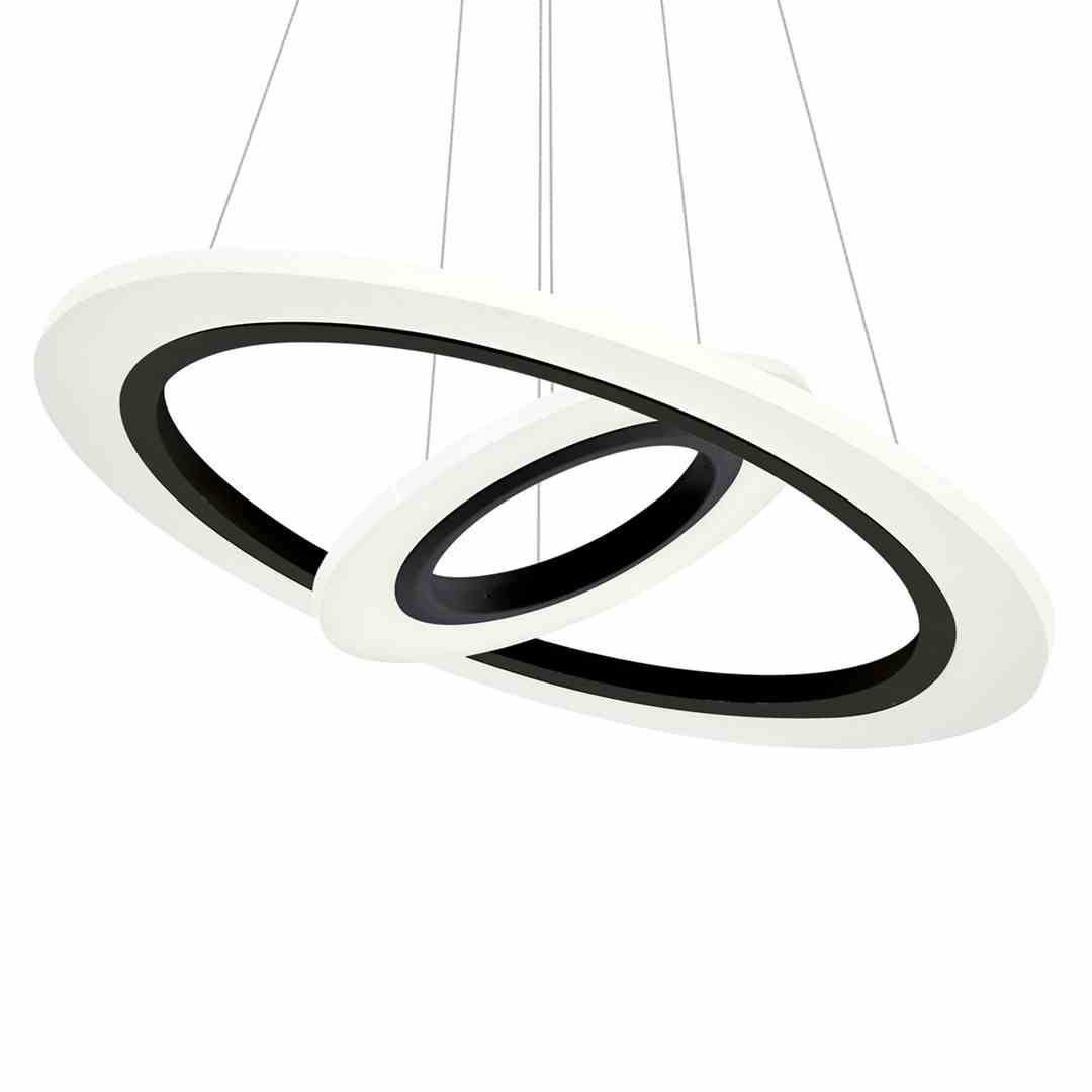 Wisząca lampa sufitowa Cosmo 348 jest połączeniem współczesnych trendów z praktycznymi rozwiązaniami. W lampie zastosowano dwie okrągłe oprawy o średnicy 30 cm i 50 cm. Należy wspomnieć także o możliwości regulowania wysokości każdej z nich od 60 do 120 cm, co pozwala na dopasowanie lampy do różnego rodzaju pomieszczeń. Dodatkowo każdą z opraw można również pochylać, nadając lampie indywidualnego stylu. Całość wykonano z wysokiej jakości materiałów: metalu i akrylu.