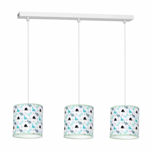Dziecięca kolekcja DINO to seria lamp w różnych konfiguracjach. Wśród nich znaleźć możemy lampy sufitowe z jednym i trzema punktami światła na listwie, z trzema osobnymi kloszami oraz zwisające z listwy. Ponadto, wiszące lampy mają możliwość regulacji wysokości zwisu, dzięki czemu można dopasować je do wnętrz o różnych wysokościach. Elementem wyróżniającym produkty tej serii są wielokolorowe abażury z motywem DINOZAURA, które z pewnością zainteresują pasjonatów tych prehistorycznych stworów.