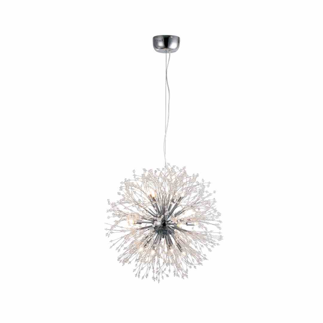 Średniej wielkości lampa Flash wyróżnia się swoim oryginalnym wyglądem. Na myśl przywodzi znaną roślinę tzw. dmuchawiec albo rozbłyskające światło. Efektowne wykończenie kryształkami nadają lampie dodatkowego stylu i wyjątkowości. Oświetlenie z kolekcji Flash sprawdzi się we wnętrzach eleganckich.