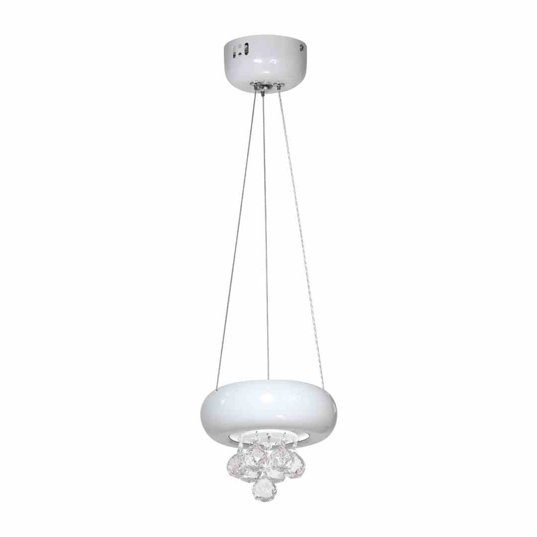 Lampa wisząca LUX BIANCO 861 wygląda niezwykle efektownie zawieszona na przykład nad stołem czy też wyspą kuchenną. Kryształki dodadzą blasku i elegancji każdemu wnętrzu, a biała, okrągła oprawa będzie świetnie korespondować z szarościami, czernią czy też z naturalnym drewnem.