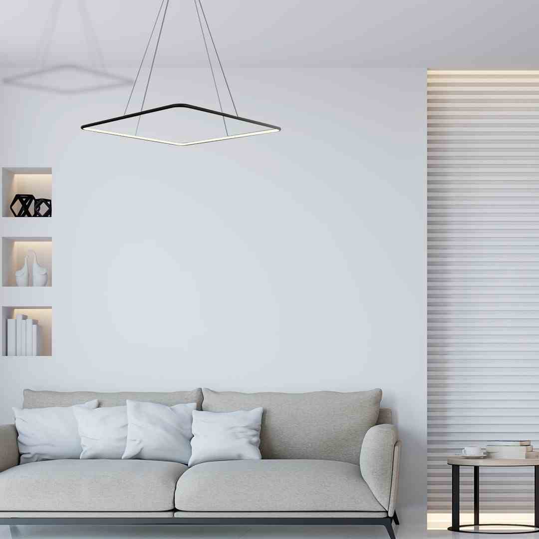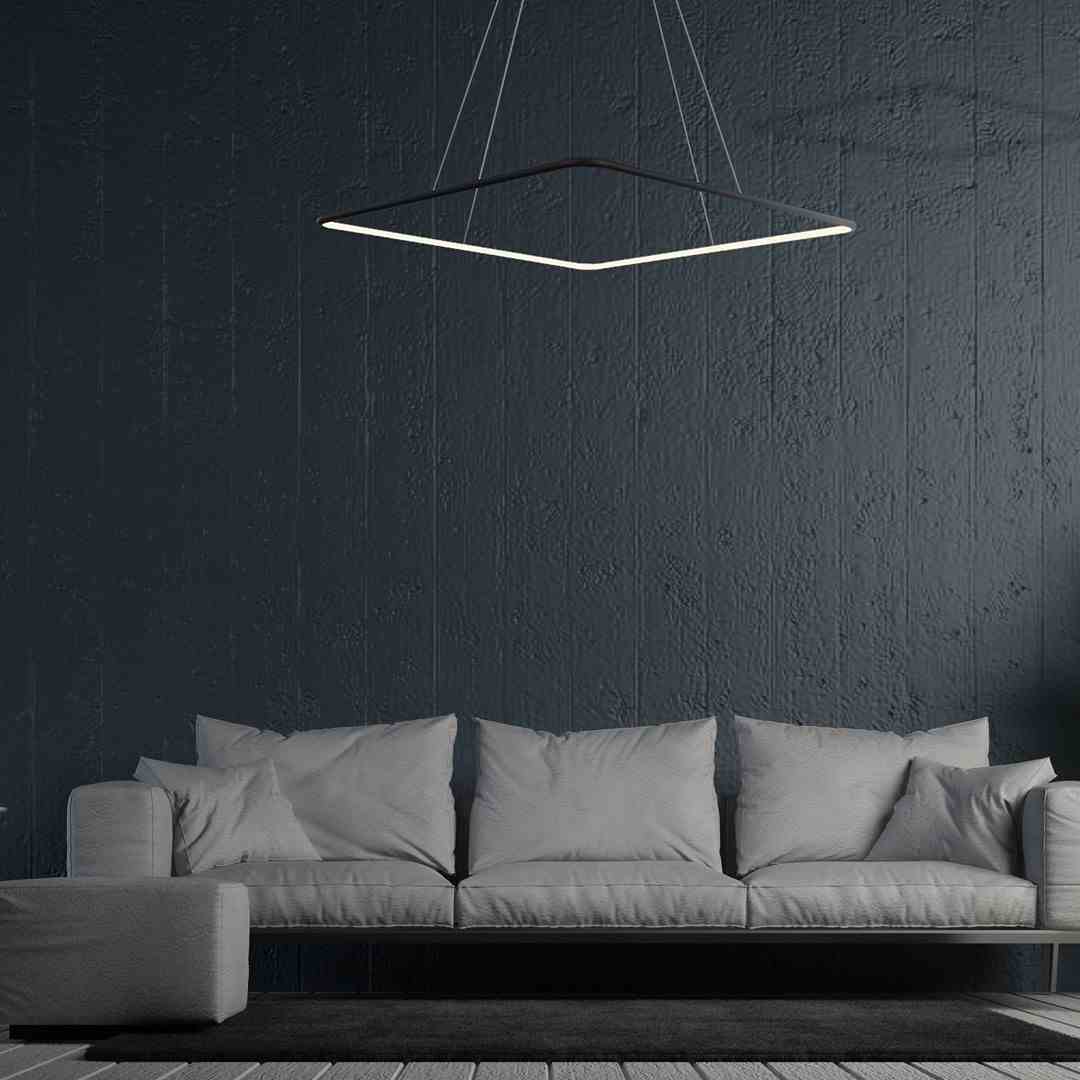 Lampa NIX BLACK 517 przeznaczona jest do zawieszenia pod sufitem. Oprawa żyrandola ma kształt kwadratu ułożonego poziomo. Szerokość lampy wynosi 40 cm. W obudowę z tworzywa sztucznego wbudowano wymienny moduł LED, który świeci ciepłą, białą barwą o temperaturze 3000 K. Strumień świetlny tego urządzenia ma wartość 1750 lm. Energooszczędny LED ma moc 25 W, co odpowiada mocy 125 W w przypadku tradycyjnej żarówki.