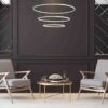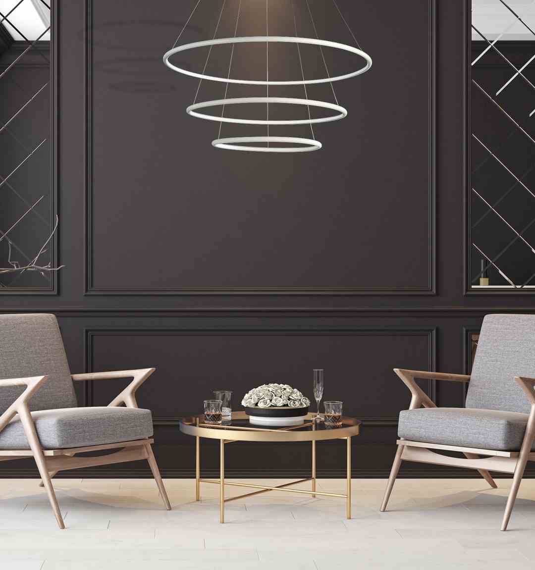 Lampa składa się z trzech źródeł światła, których wysokość można dowolnie regulować do 100 cm. Takie rozwiązanie pozwala na dopasowanie jej do pomieszczeń zarówno wysokich, jak i niskich. Trzy okrągłe oprawy mają różne średnice: 40 cm, 60 cm i 80 cm. Zamontowano w nich wymienne moduły LED o łącznej mocy 99W, które odpowiadają 500 W tradycyjnej żarówce. Barwę oświetlenia dobrano w taki sposób, aby lampa gwarantowała jak największy komfort jej użytkowania, stąd barwa najbardziej ciepła 3000 K oraz bardzo wysoka jasność 6930 lm. Produkt wykonano z metalu i akrylu.