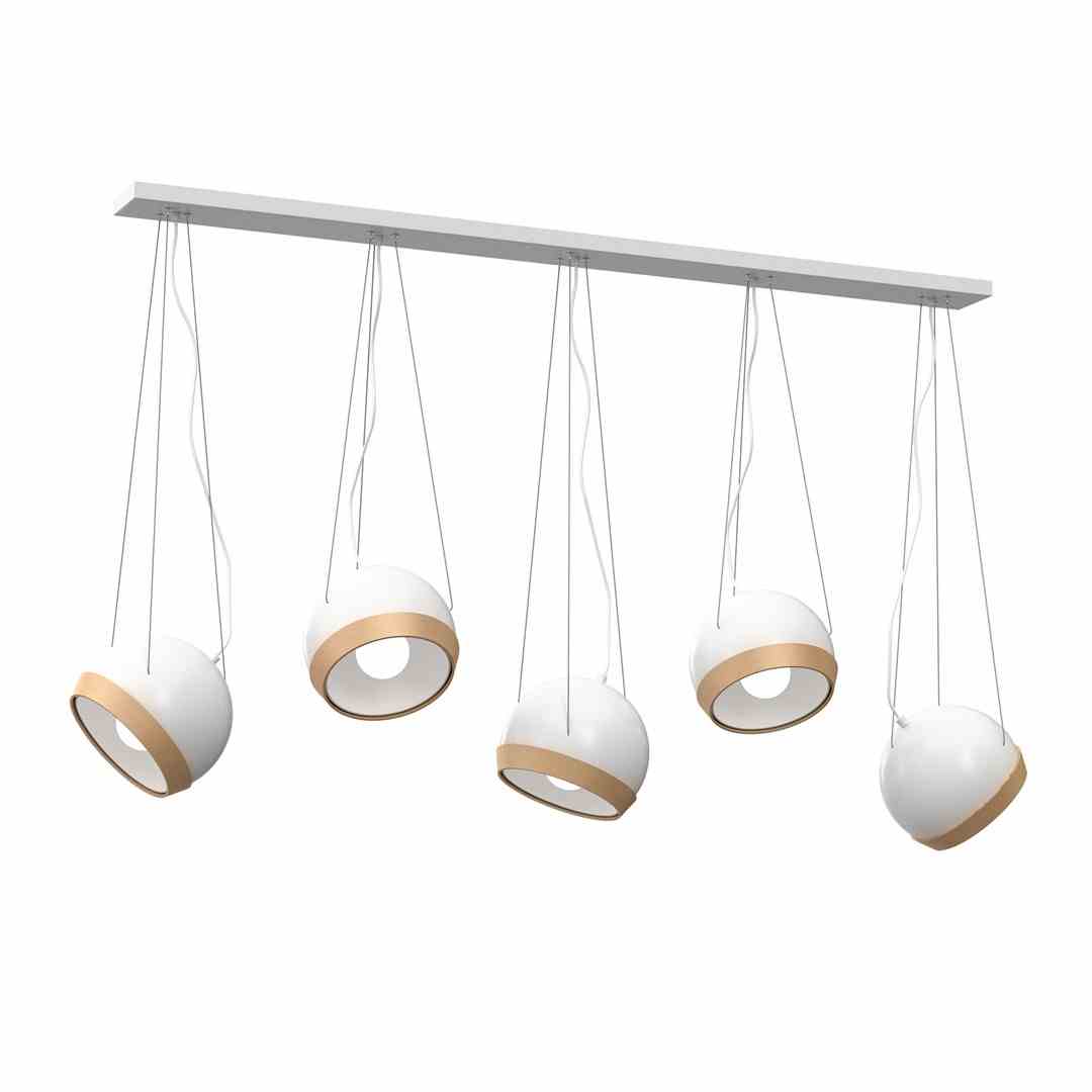 Szeroka kolekcja lamp Oval White to aż 11 różnych rodzajów oświetlenia. W skład rodziny wchodzą niewielki kinkiet i lampa stojąca, a także lampy sufitowe w różnej konfiguracji: wiszące z jednym, trzema i pięcioma punktami światła, na listwie z trzema, czterema i pięcioma punktami światła oraz na okrągłej podstawie z trzema punktami światła lub z trzema i pięcioma punktami światła zamontowanymi na ramionach.