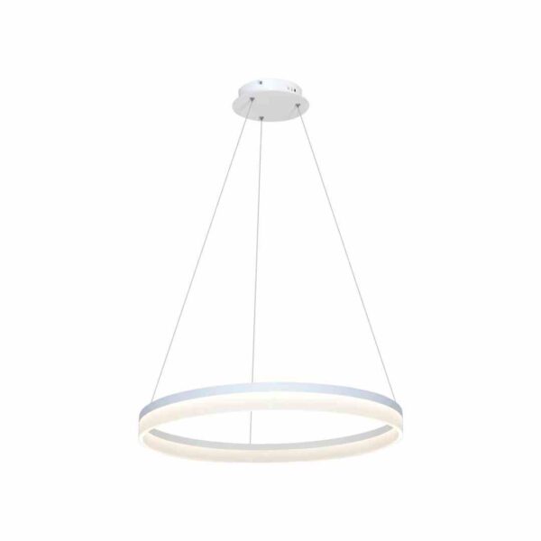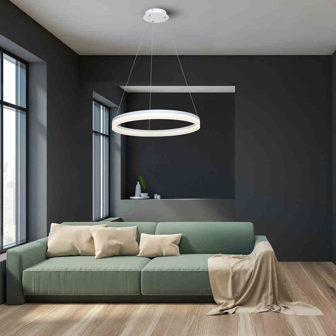 „Ring 066 to wisząca lampa sufitowa wyróżniająca się prostą formą i możliwością uniwersalnego zastosowania. Posiada jedno źródło światła o mocy 36 W, które odpowiada 157 W tradycyjnej żarówki. Wielką zaletą lampy jest możliwość regulacji wysokości na przewodzie – do 100 cm, co pozwala na dopasowanie jej do różnego typu pomieszczeń. Oprawa lampy ma okrągły kształt o średnicy 60 cm, a całość wykonano z wysokiej jakości materiałów: metalu i akrylu. Lampę charakteryzuje również strumień świetlny 2200 lm o przyjemnej dla oka barwie 4000 K, która zapewnia przytulny klimat w pomieszczeniach.