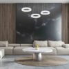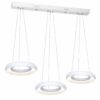 Wisząca lampa sufitowa Rondo 352 została wyposażona w trzy źródła światła, zamontowane w efektownych okrągłych oprawach wykonanych z metalu. Wysokość każdej z opraw można dowolnie regulować od 60 do 100 cm. To praktycznie i łatwe w obsłudze rozwiązanie umożliwia tworzenie indywidualnych aranżacji oraz dopasowanie lampy do dowolnej wysokości pomieszczenia. Źródłami światła są tutaj wymienne moduły LED o łącznej mocy 36 W. Zestaw uzupełniają elementy niezbędne do jej montażu.