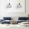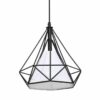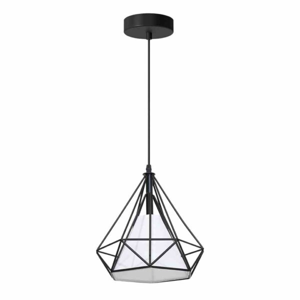 Model TRIANGOLO 4384 to piękna lampa w klimacie vintage. W czarnej, drucianej, geometrycznej oprawie umieszczono biały klosz, przez który przebija się światło. Żarówka nie jest zatem widoczna. Ten model doskonale będzie pasował do jadalni czy pokoju dziennego. W jasnym wnętrzu, ze względu na swój kolor, będzie elementem wyróżniającym. Lampa doskonale prezentuje się w połączeniu z innymi modelami z tej kolekcji.