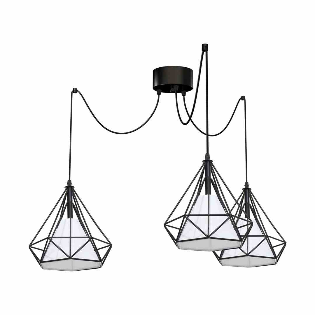 TRIANGOLO 163 jest lampą wiszącą, która ma regulowaną wysokość za pomocą przewodu. Licząc od rozety, może wynosić do 120 cm. Szerokość tego modelu jest z kolei równa 80 cm. Lampa ma trzy źródła światła. Każde z nich ma gwint typu E27, dzięki czemu przy tym modelu można zastosować właściwie każdy typ żarówki: tradycyjny o klasie energetycznej od A++ do E, a także LEDowy o dowolnej mocy. Każdy z punktów świetlnych ma moc równą 40 W, co oznacza, że łączna moc tego modelu wynosi 120 W. Wartość napięcia znamionowego jest z kolei równa 230 V. Do wykonania tego modelu lampy użyto dwóch bardzo wytrzymałych, a przy tym bezpiecznych materiałów: tworzywa PVC oraz metalu.