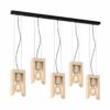 Lampy z kolekcji VINCENZO wykonano z połączenia dwóch materiałów. Podstawy lamp, zwisy czy ramy zrobiono z czarnego metalu, a części pełniące funkcję żyrandola z jasnego drewna. Warto wspomnieć, że to one dodają niezwykłego charakteru całości. Mają bowiem formę otwartego prostokąta, przy czym dwa boki zostały ścięte, co nadaje całości asymetrycznego charakteru. Taka konstrukcja doskonale eksponuje dekoracyjną żarówkę.