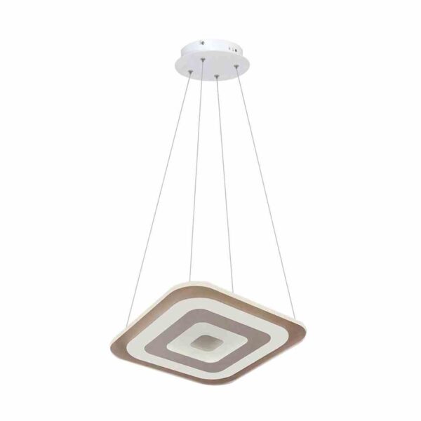 Wisząca lampa sufitowa z kwadratową oprawą o szerokości 52 cm. Lampa ma możliwość regulacji wysokości do 100 cm, dzięki czemu można ją bez problemu dopasować do pomieszczeń zarówno niskich, jak i wysokich. Źródłem światła jest moduł LED o mocy 45W. Jedną z najważniejszych zalet lamy jest przyjemna dla oka barwa światła, której wartość można zmieniać: 3000 K lub 4000 K. Produkt wykonano z metalu i akrylu. Do zestawu dołączony jest pilot pozwalający na włączanie i wyłączanie lampy oraz na zmianę barwy światła. Prezentowana lampa charakteryzuje się atrakcyjną i uniwersalną kolorystyką – wykończona w białym i transparentnym odcieniu, oraz okrągły kształt. Oprawa jest świetną propozycją do wnętrz utrzymanych we współczesnym stylu, będąc ich idealnym uzupełnieniem. Produkt objęty jest 2-letnią gwarancją, w ramach której świadczone są nieodpłatne usługi gwarancyjne. Po upływie ww. okresu istnieje możliwość skorzystania ze specjalistycznego firmowego serwisu.