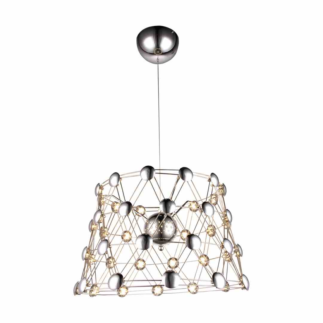 Unikalna forma lampy będzie stanowić ciekawy element dekoracyjny wielu pomieszczeń. Ze względu na oryginalna stylistykę lampa świetnie sprawdzi się w salonach, sypialniach oraz nowoczesnych biurach. Na klosz składają się metalowe kulki połączone drutem tworzące przestrzenny abażur.