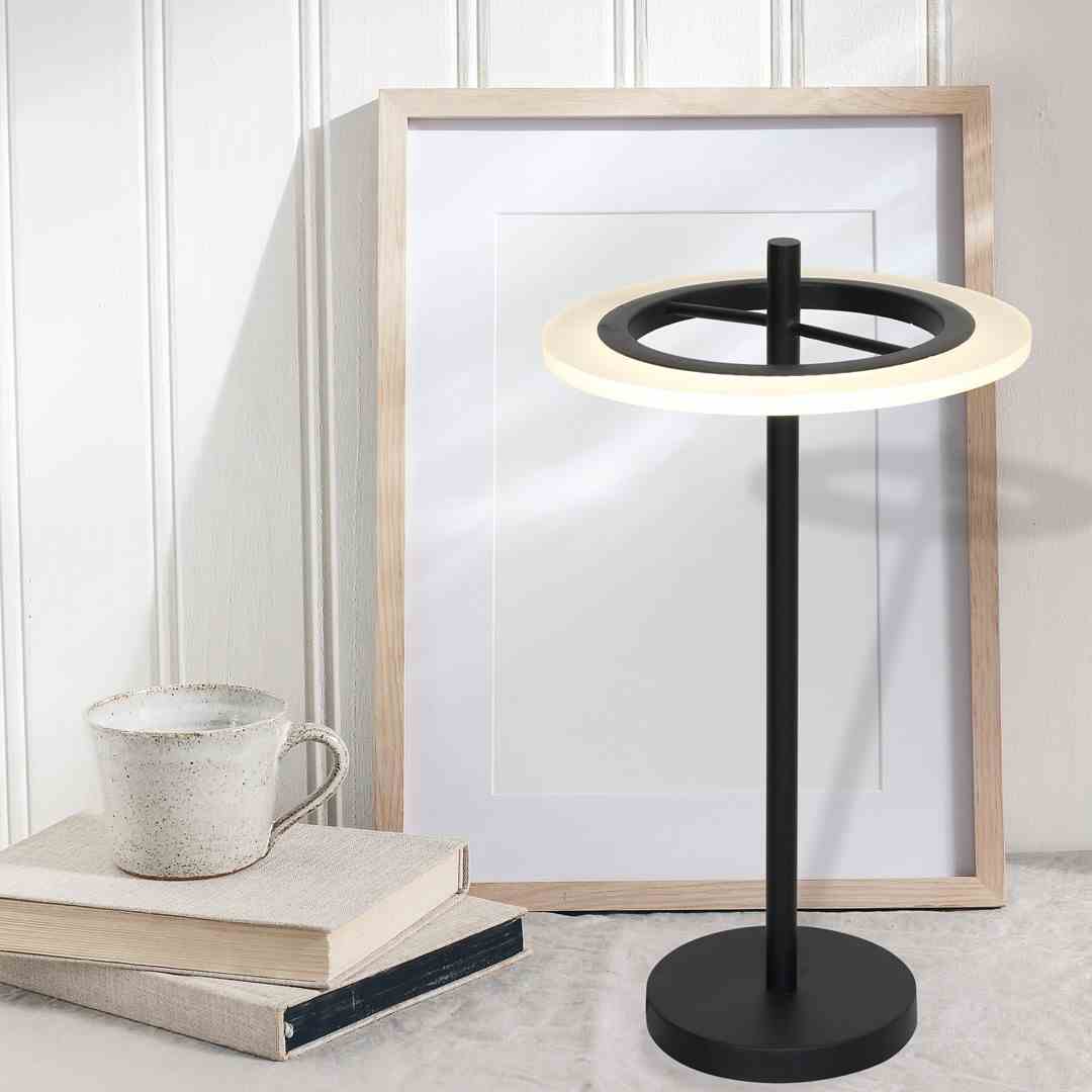 Lampa biurkowa o oryginalnej stylistyce i wykonana z wysokiej jakości materiałów: metalu i akrylu. Wyposażona w jedno źródło światła z wymiennym modułem LED o mocy 12 W, któremu odpowiada 65 W tradycyjnej żarówki. Całość ma wymiary 45 cm x 30 cm. Na uwagę zasługuje też przyjemna dla oka barwa 4000 K oraz jasny strumień światła 840 lm, umożliwiający bezproblemową pracę. Wartość zasilania mieści się na poziomie od 220 V do 240 V.