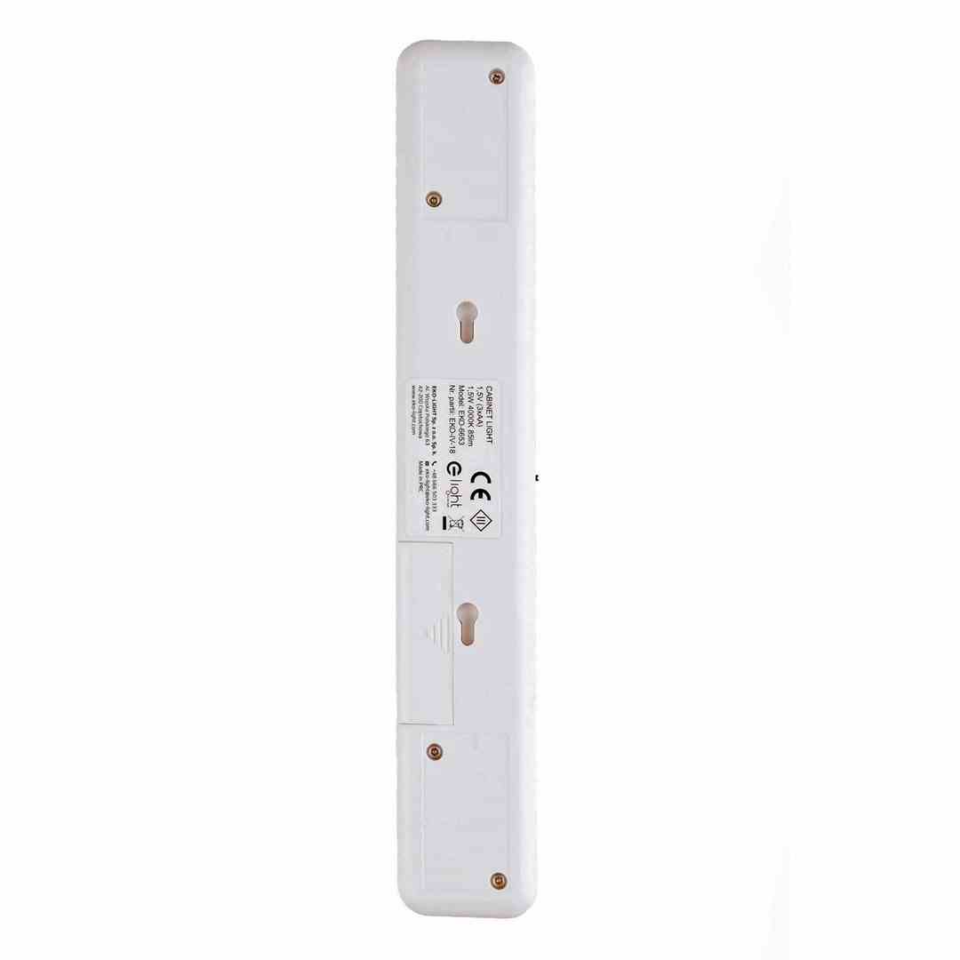 Lampka z włącznikiem marki Eko-Light wykonana jest z trwałego materiału PCV w białym kolorze. Model ma temperaturę barwową o wartości 4000 k, co oznacza, że emitowane światło jest całkowicie neutralne. Urządzenie działa z mocą 1,5 W, przy strumieniu światła równym 85 lm. Wymiary tego modelu wyglądają następująco: szerokość 45 mm, głębokość 20 mm, a wysokość 280 mm. Jego waga wynosi zaledwie 0,15 kg, więc jest bardzo lekki.