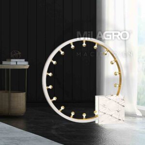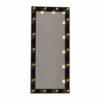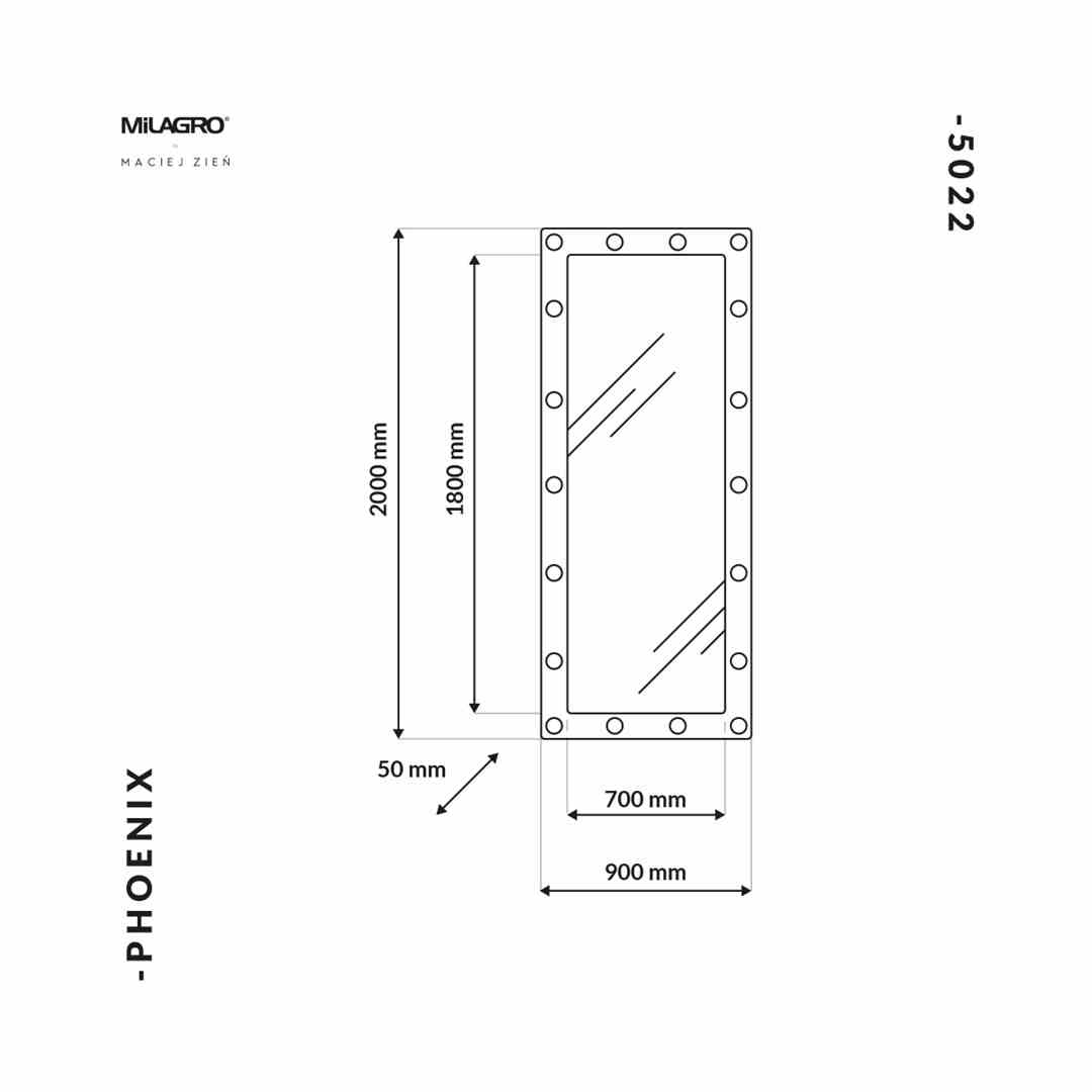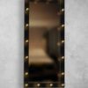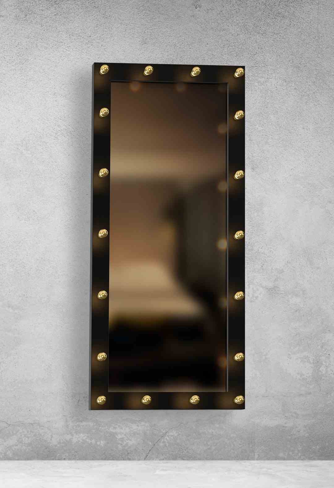 Poza 18 żarówkami umieszczonymi na prostokątnej, czarnej ramie ma również lustro.