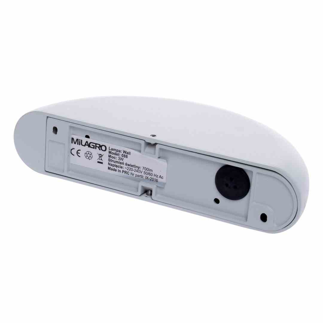 „Lampa WALL 088 jest przeznaczona do montażu ściennego. Wykonano ją ze starannie dobranego i bezpiecznego aluminium. Produkt posiada dwa zintegrowane moduły LED, które dołączono do zestawu. Maksymalna moc tej lampy plasuje się na poziomie 3 W. Taka wartość odpowiada standardowej żarówce o mocy 22 W. Wartość napięcia jest równa 230 V. Jasność tego modelu wynosi 210 lumenów, a temperatura barwowa plasuje się na poziomie 4000 K. Lampa daje zatem światło o neutralnej, białej barwie. Wysokość tego modelu wynosi 20 cm, głębokość 10 cm, a jego szerokość ma 4,3 cm. Produkt przypisano do klasy ochronności IP 44.
