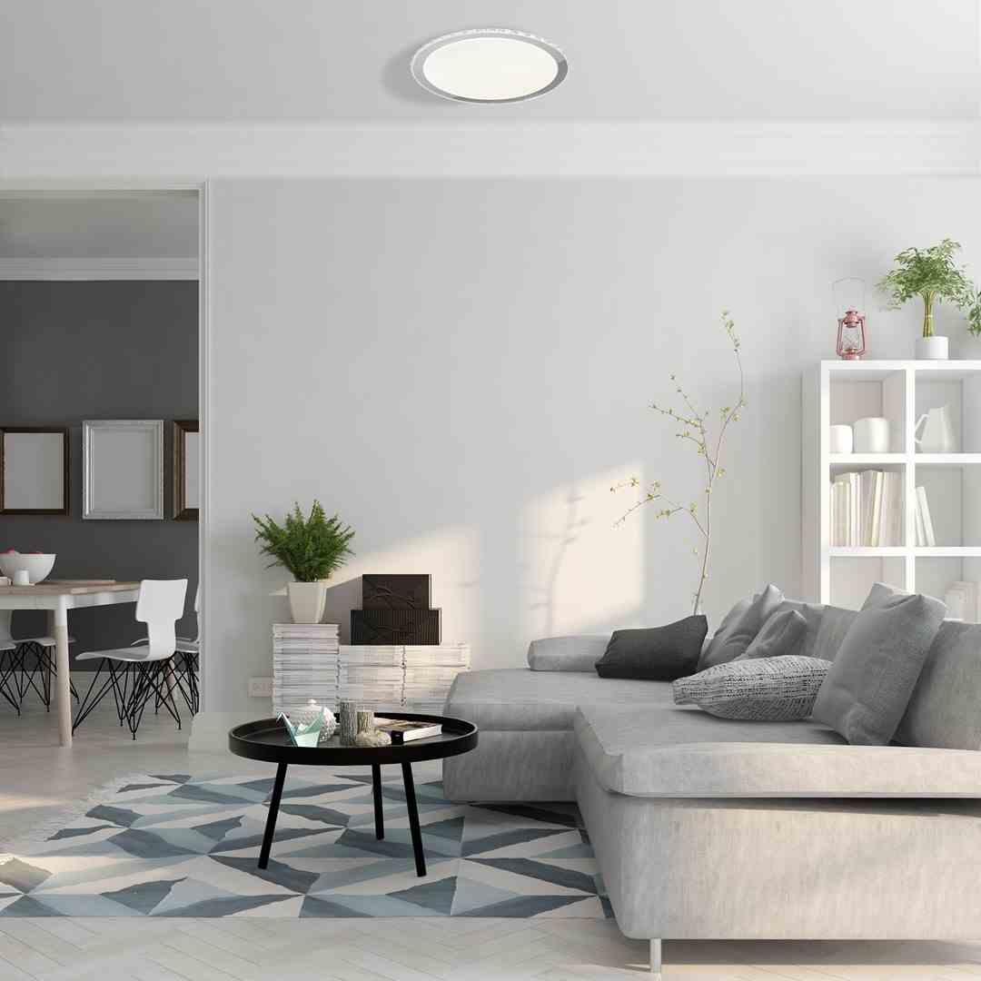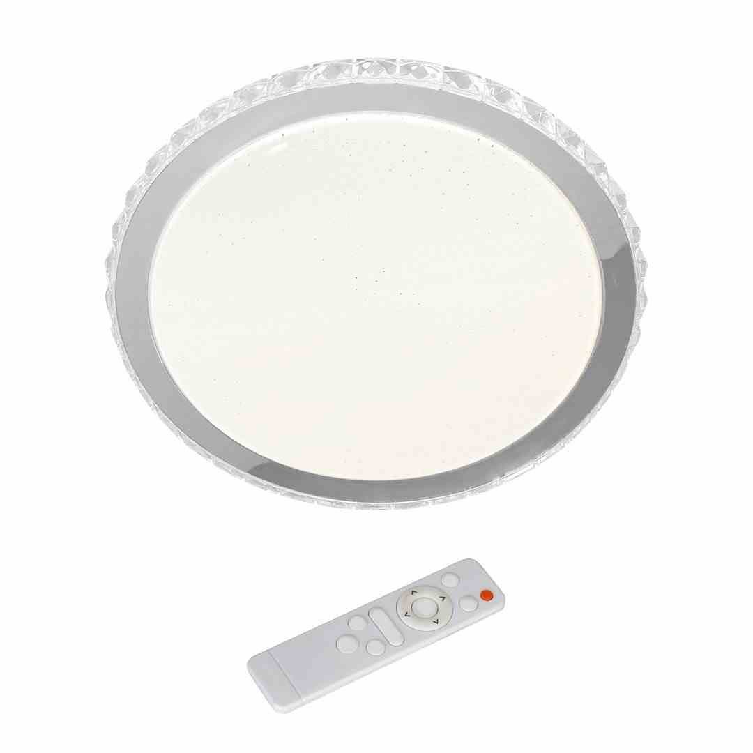 Lampa sufitowa LAYLA wykonana jest z bezpiecznego i trwałego tworzywa sztucznego. Natęrzenie światła regulowane jest przy pomocy pilota, którym można rówieniż zmieniać barwę światła pomiędzy 3000K, 4000K i 6000K.