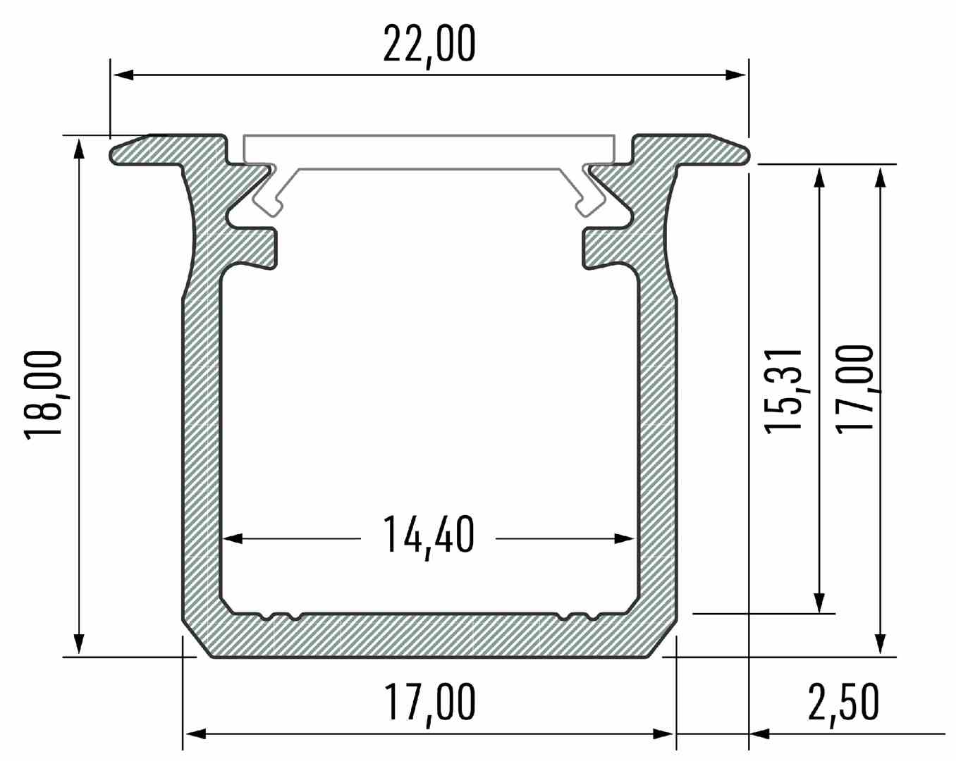Profil typ G, wpuszczany. Zaprojektowany z myślą o oświetleniu pomieszczeń kuchennych i sklepowych. Świetnie pasuje do montażu wewnątrz szaf, blatów i schodów. W zestawie znajduje się: klosz mleczny