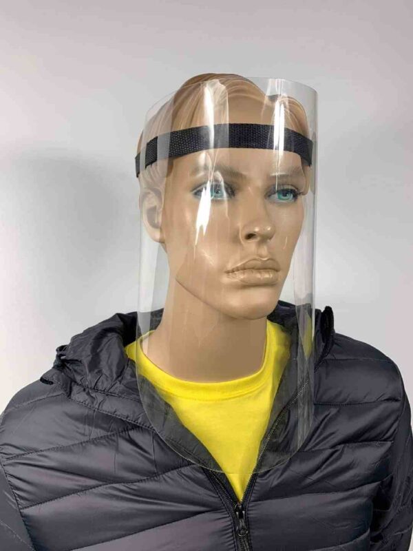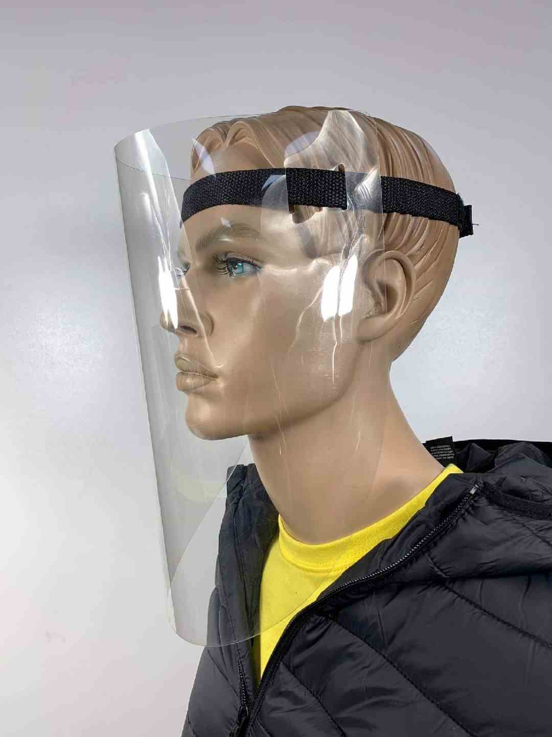 Przyłbica ochronna na twarz wykonana z tworzywa PET z recyklingu o grubości 0,4mm. Pełna transparentność zapewnia doskonałą widoczność i nie ogranicza pola widzenia. Mocowanie w postaci regulowanego paska zapinanego na rzep pozwala na idealne dopasowanie do kształtu głowy. Przyłbica chroni całą twarz, brodę i czoło przed kontaktem z zarazkami oraz ogranicza możliwość dotykania twarzy dłońmi. Przeznaczona jest dla osób pracujących w sektorach przemysłowych, medycznych i budowlanych. Przemyślana konstrukcja przyłbicy umożliwia noszenie dodatkowych elementów ochronnych jak maseczki czy okulary.