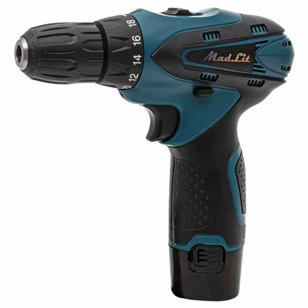 Precyzyjna wkrętarka marki Mad-Lit została wykonana z najlepszej jakości materiałów w kolorze czarnym z niebieskimi elementami. Niewielki ciężar oraz zamknięta rękojeść sprawiają, że narzędzie jest poręczne, a praca z jego wykorzystaniem jest precyzyjna i komfortowa. Prędkość obrotów w zależności od biegu wynosi 0-350/0-1250 rpm, a maksymalny moment obrotowy to 23 Nm. Średnica największego wiertła to 10 mm, natomiast głębokość wiercenia w zależności od materiału wynosi: 21 mm w drewnie, 12 mm w aluminium oraz 10 mm w metalu. Razem z wkrętarką w zestawie znajduje się ładowarka oraz bateria 10.8-12V/1.3Ah LI-ION. Model dostępny jest również w kolorze czerwonym. Produkt objęty jest dwuletnią gwarancją.