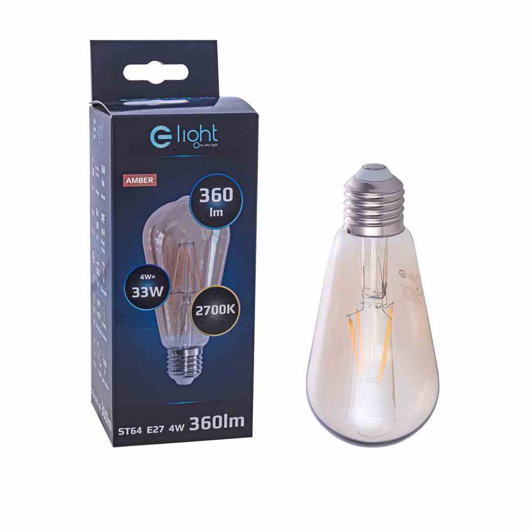 EKZA3621 to żarówka LED o rozmiarze ST64 i gwincie typu E27. Zgodnie z opisem producenta ten model nie współpracuje ze ściemniaczem. Żarówka osiąga maksymalną moc o wartości 4W, co odpowiada 24W w tradycyjnej, żarowej żarówce. Wartość napięcia znamionowego tego modelu plasuje się na poziomie 230V. Strumień świetlny ma wartość 400 lumenów. Z kolei temperatura barwowa jest równa 2700K. Oznacza to, że żarówka daje światło w ciepłej tonacji, która jest bardzo przyjemna dla ludzkiego oka. Żarówka EKZA3621 do idealny dodatek do wnętrz w stylu vintage lub industrialnym. Jej podłużny kształt oraz oryginalny i zarazem piękny bursztynowy kolor można doskonale wyeksponować, umieszczając ją w lampie z otwartym lub z przezroczystym kloszem. Model EKZA3621 to polski produkt objęty całkowitą gwarancją producenta – MiLAGRO.
