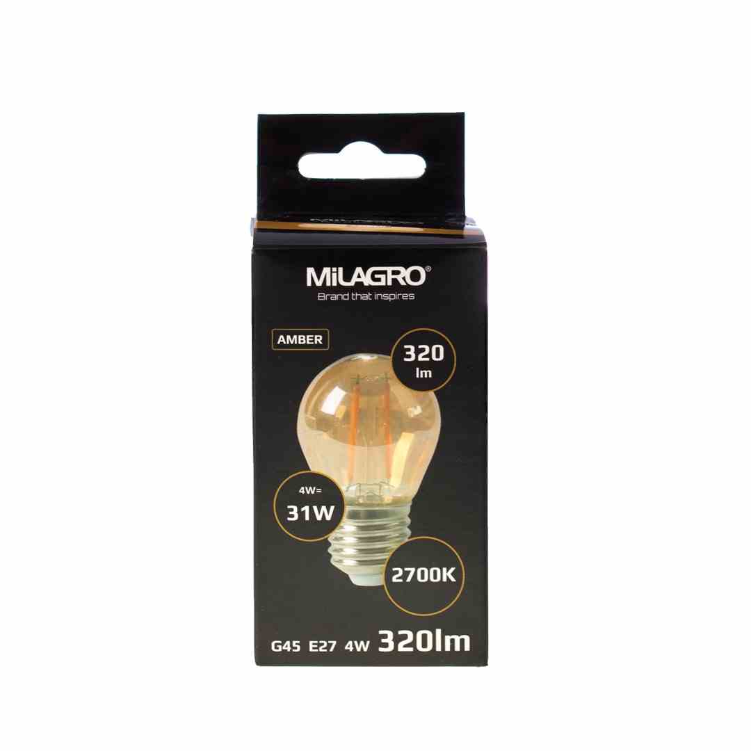 Żarówka LED ML545 to żarówka LED o tradycyjnym, kulistym kształcie w rozmiarze G45. Zastosowano przy niej gwint typu E27. Moc tego modelu plasuje się na poziomie 4 W i odpowiada 31W w tradycyjnej żarówce. Z kolei wartość znamionowego napięcia zasilania dochodzi do 230V. Żarówka daje światło o ciepłej i bardzo przyjemnej dla oka barwie, a jej temperatura wynosi 2700K. Z kolei strumień świetlny ma wartość 280 lumenów. Zgodnie z opisem producenta, ten model nie współpracuje ze ściemniaczem.