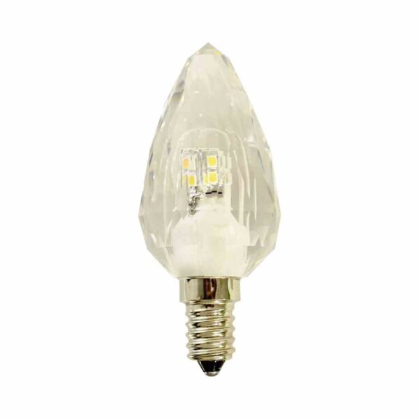 kryształowa żarówka LED wykonana z ciętego szkła o mocy 4,3W na gwint e14 o barwie 4000k strumień świetlny 410lm idealnie pasuje do żyrandoli kryształowych dodatkowo podkreślając ich piękno a zlewając się z nimi co powoduje iż efekt wizualny lamp jest zdwojony .