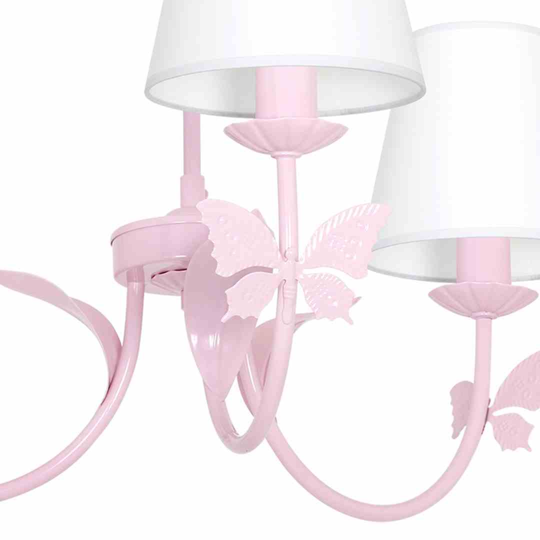 Kolekcja klasycznych lamp Alice Pink to doskonała propozycja dla fanów tradycyjnych form i kształtów. Lampy zostały wykończone w pudrowym różowym kolorze, z kolei proste abażury są w kolorze białym. Oświetlenie sprawdzi się zarówno w salonach, jak i jadalniach. Elementami wyróżniającymi kolekcję Alice Pink są estetyczne zdobienia w kształcie motyli. Klienci wybierać mogą spośród czterech rodzajów lamp: kinkietu z jednym punktem światła, żyrandolami z trzema punktami światła oraz żyrandolem z pięcioma punktami światła. Do oświetlania zaleca się stosowanie żarówek LED z gwintem E14.Produkty objęte są 2-letnią gwarancją producenta, w ramach której świadczone są nieodpłatne usługi gwarancyjne.
