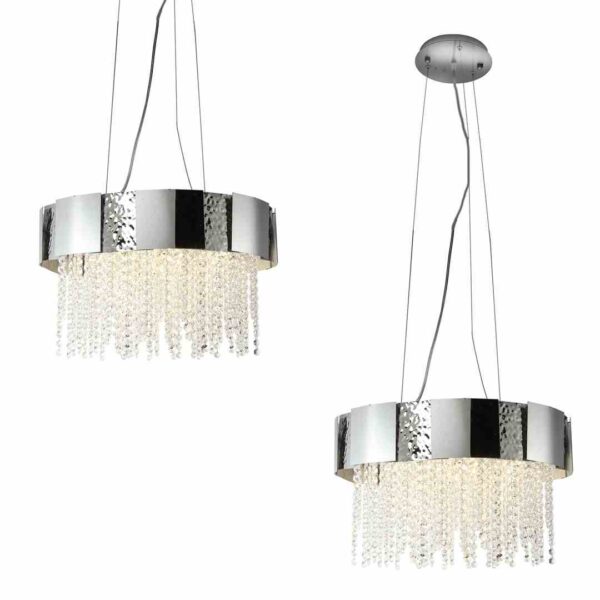 ASTOR to linia oświetlenia marki MiLAGRO, która zachwyca przepychem i elegancją. Jej częścią są dwa stylowe żyrandole. Do ich wykonania wykorzystano najwyższej jakości metal oraz połyskujące i odbijające światło kryształy. Żyrandol dostępny jest w dwóch wersjach kolorystycznych: w srebrze oraz w złocie. Składa się z masywnego i efektownie wyglądającego okręgu, z którego “wypływają” kaskady kryształów.