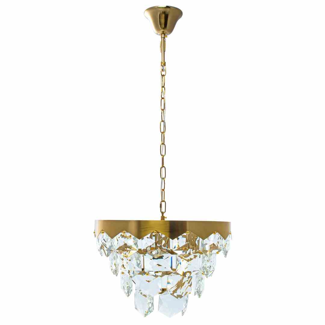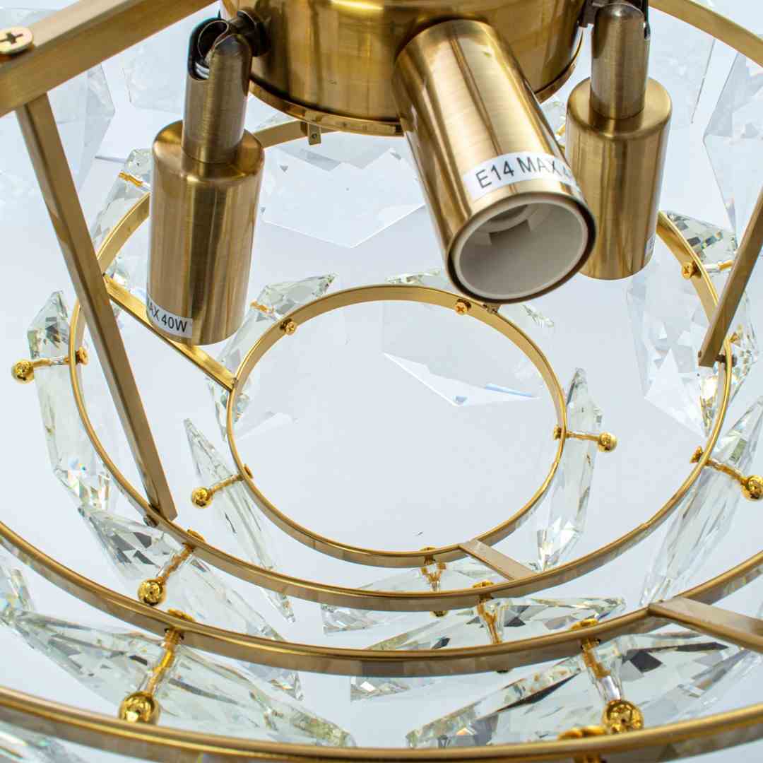 Żyrandol wyróżnia się swoim kształtem, który idealnie sprawdzi się w przestrzeniach typu glamour. Lampa jest wykonana z wysokiej jakości materiałów: metal i kryształ, co daje jej bardzo klasyczny i elegancki wygląd. Model dostępny jest w kolorze złotym. Mieniące i odbijające się od kryształów światło sprawi, że żyrandol będzie dobrze się prezentował zarówno w salonie, jak i w sypialni.