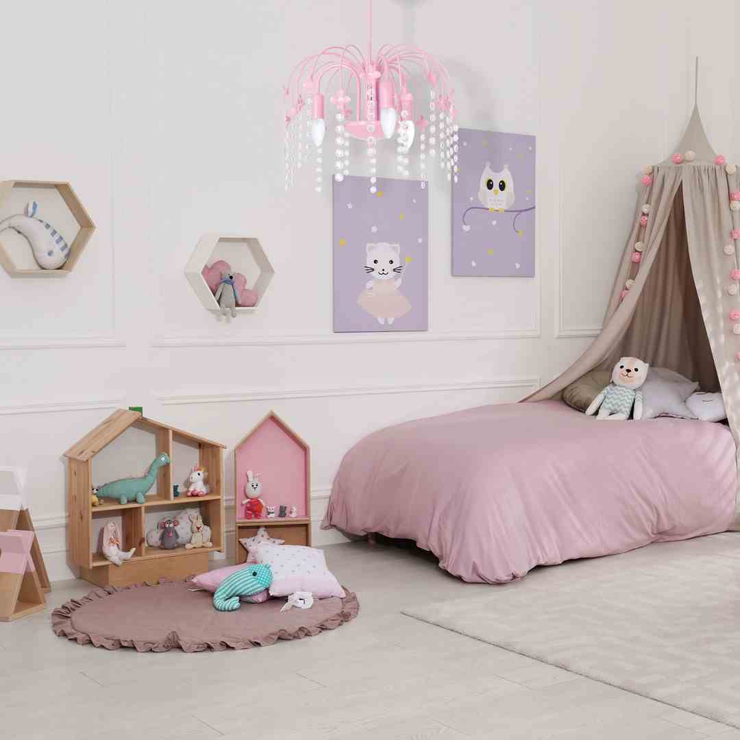 Zarówno żyrandole, jak i kinkiety są dostępne w czterech wersjach kolorystycznych: białej, szarej, jasnej oraz ciemnej różowej. W zależności od własnego gustu można je dowolnie ze sobą łączyć lub postawić na jedną barwę. Urocze kwiatki oraz pięknie odbijające światło kryształki z pewnością doskonale wkomponują się w wystrój dziecięcych pokojów.