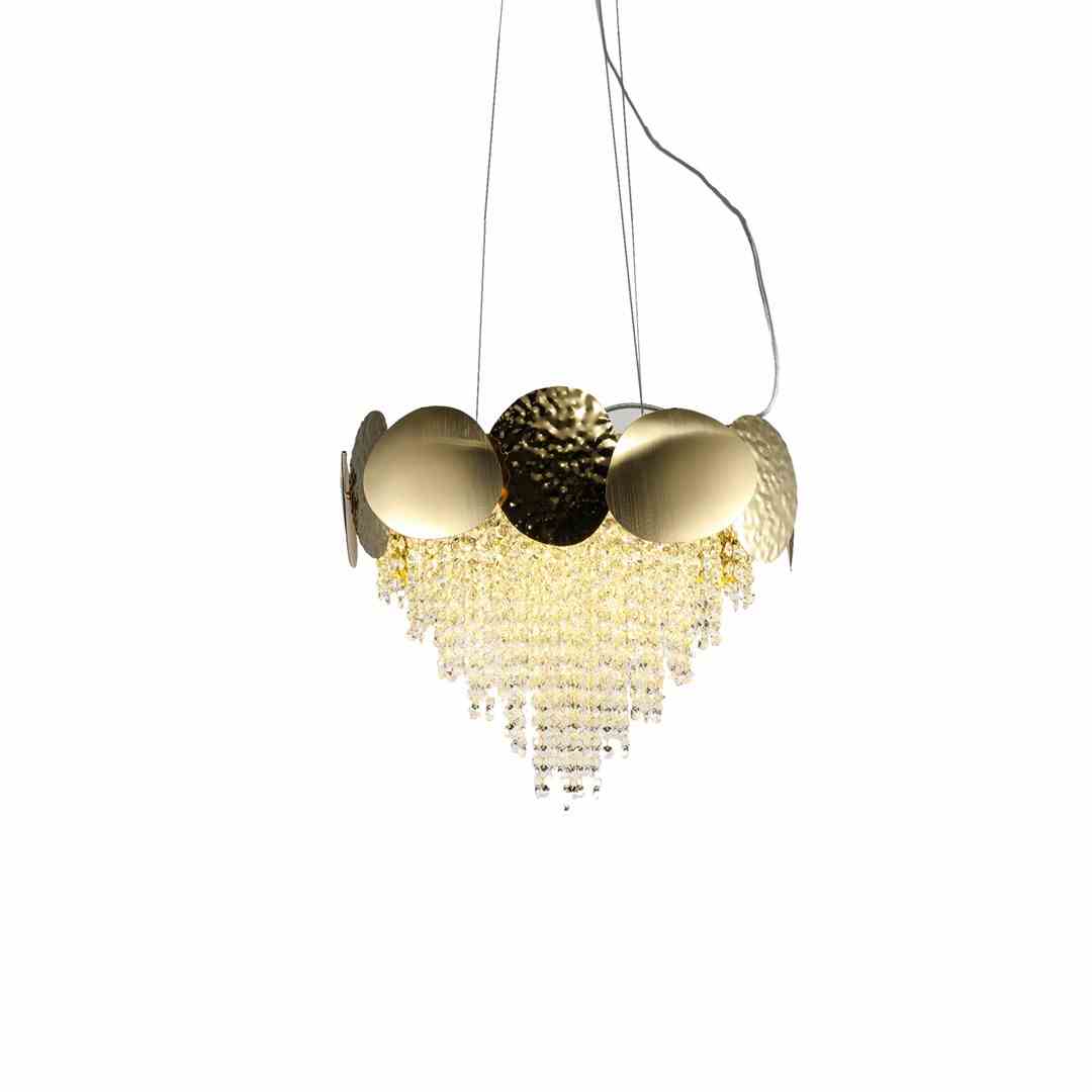 Lampy z tej linii wykonano także z wysokiej jakości, starannie dobranych tworzyw – z metalu i z kryształków.